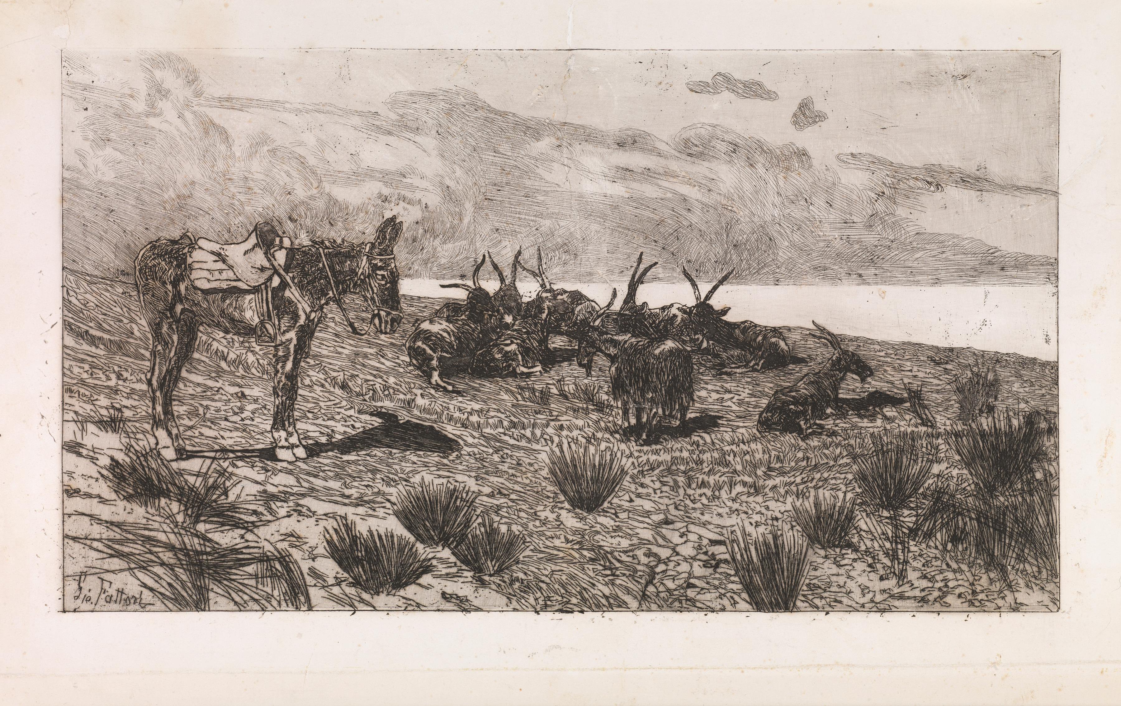 Fattori, Giovanni(Livorno 1825 – Firenze 1908)LE CAPREAcquaforte su...