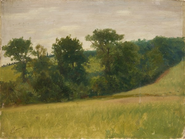 Lot 24 | Eugenio Cecconi "Paesaggio collinare" olio su cartone (cm 24x32) Firmato in bas