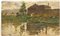 Guglielmo Ciardi "Villa lungo il fiume" olio su tavola (cm 20x33,5) Firmato in