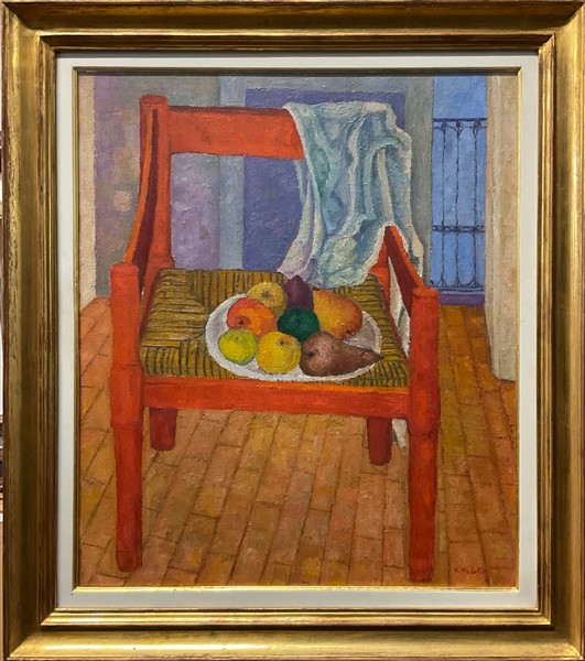 Vito Melotto "La sedia rossa" olio su tela (cm 70x60) Firmato in basso a destra