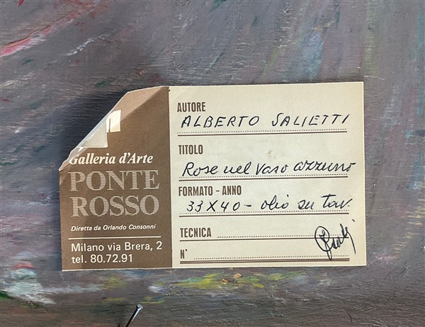 Alberto Salietti "Rose nel vaso azzurro" 1952 olio su compensato (cm 40x33) Firm