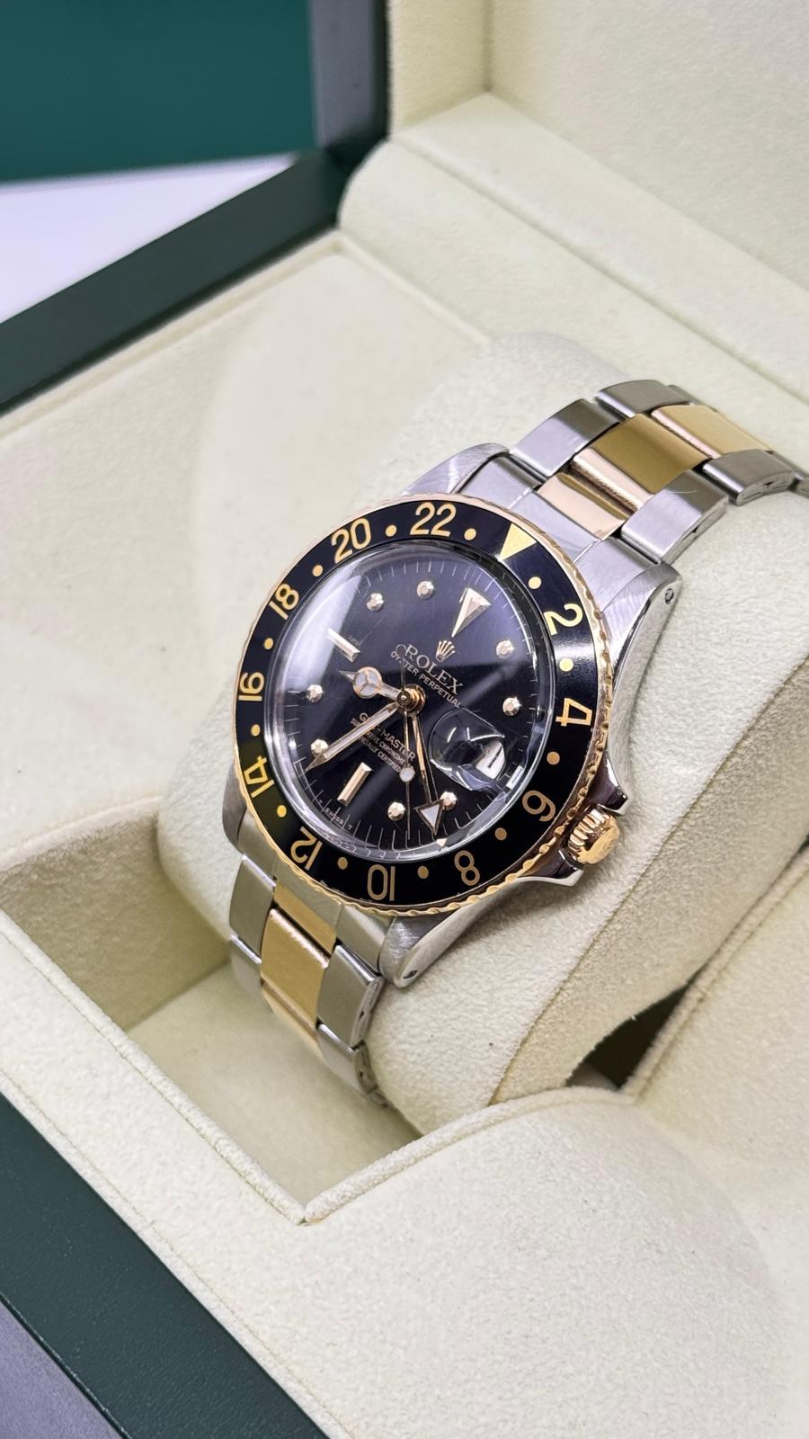 Marca Rolex Modello gmt master Ref 1675 Anno 1978 Vetro plexy Quadrante trizio nipple dial Sfere trizio Cassa 40mm Cinturino oyster acc oro Garanzia Rolex traforata Garanzia negozio 12 mesi - COMMISSIONE D’ASTA 25%