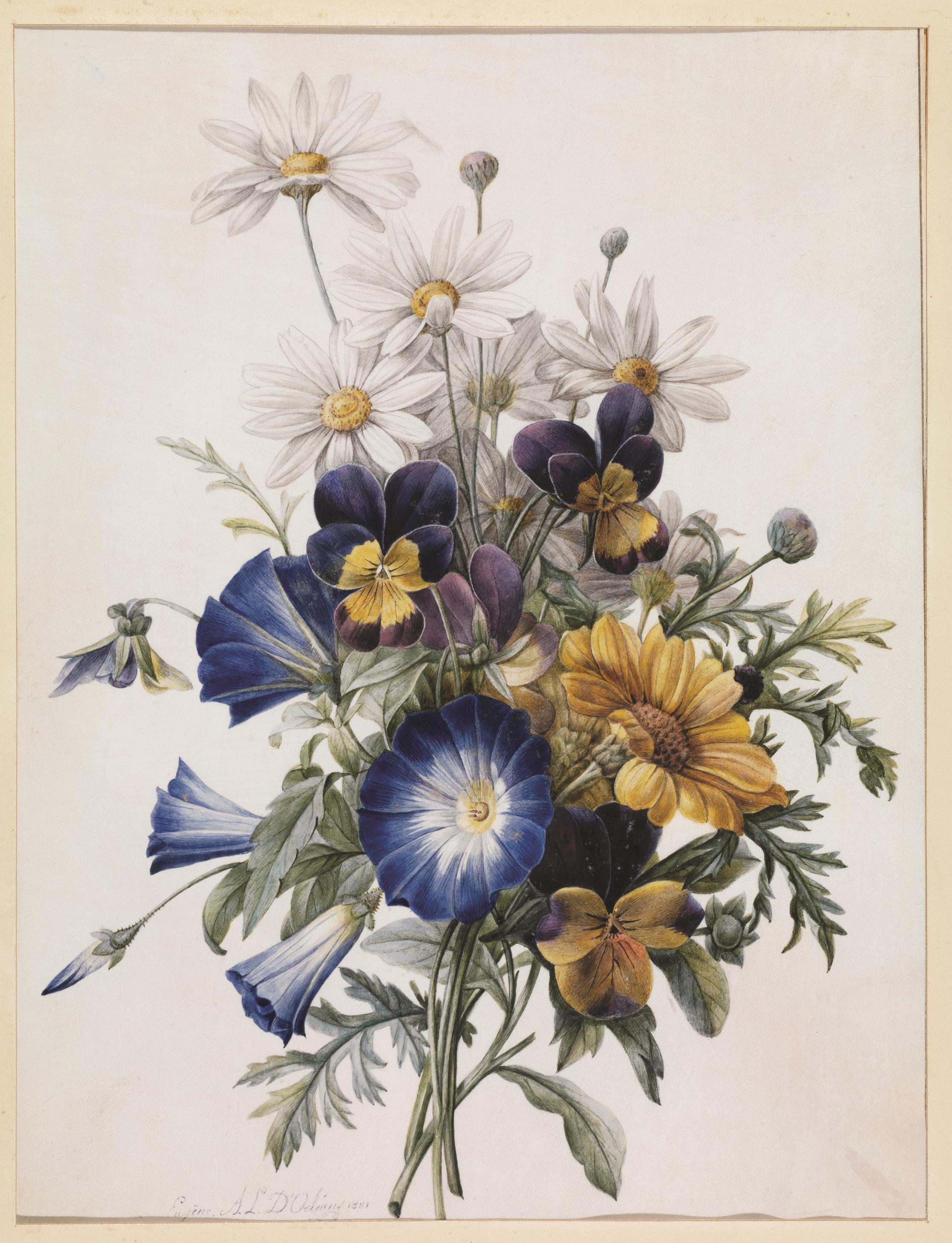 Scuola francese del XIX secoloMAZZO DI FIORITempera policroma su pergamena....