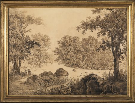 Scuola tedesca prima metà del XIX secoloPAESAGGIO CON ALBERIPenna e...