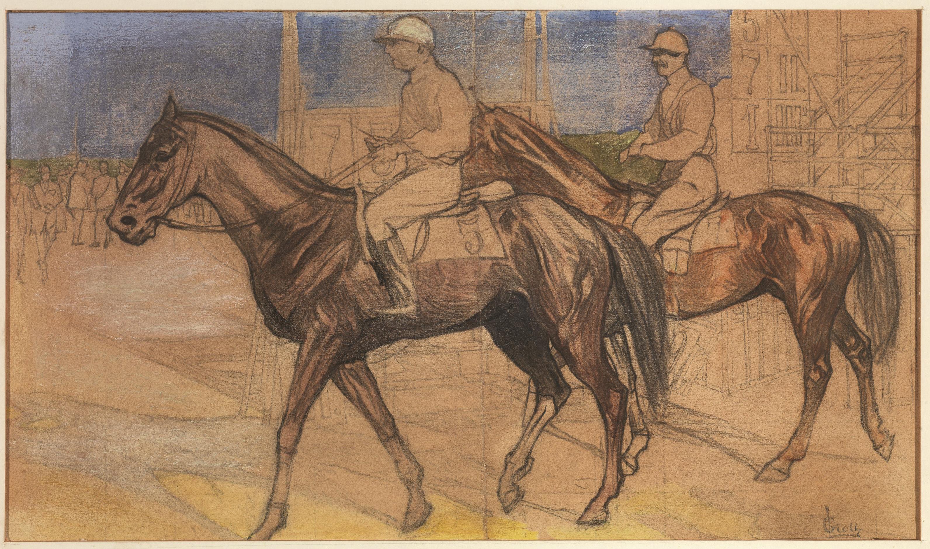 Gessetto nero e pastello policromo su cartone. mm 260x452.