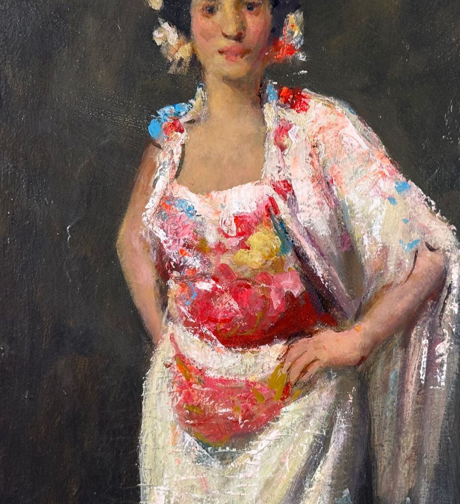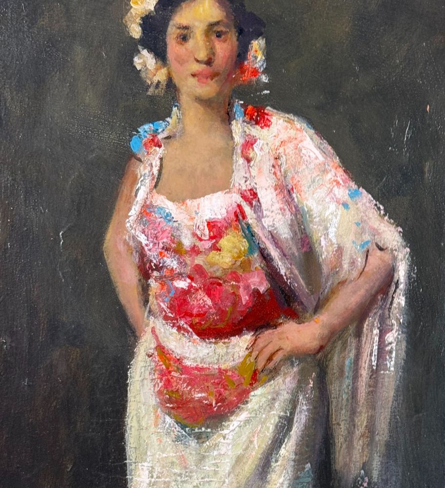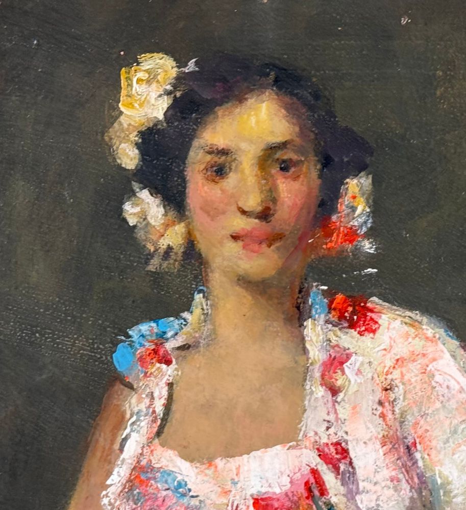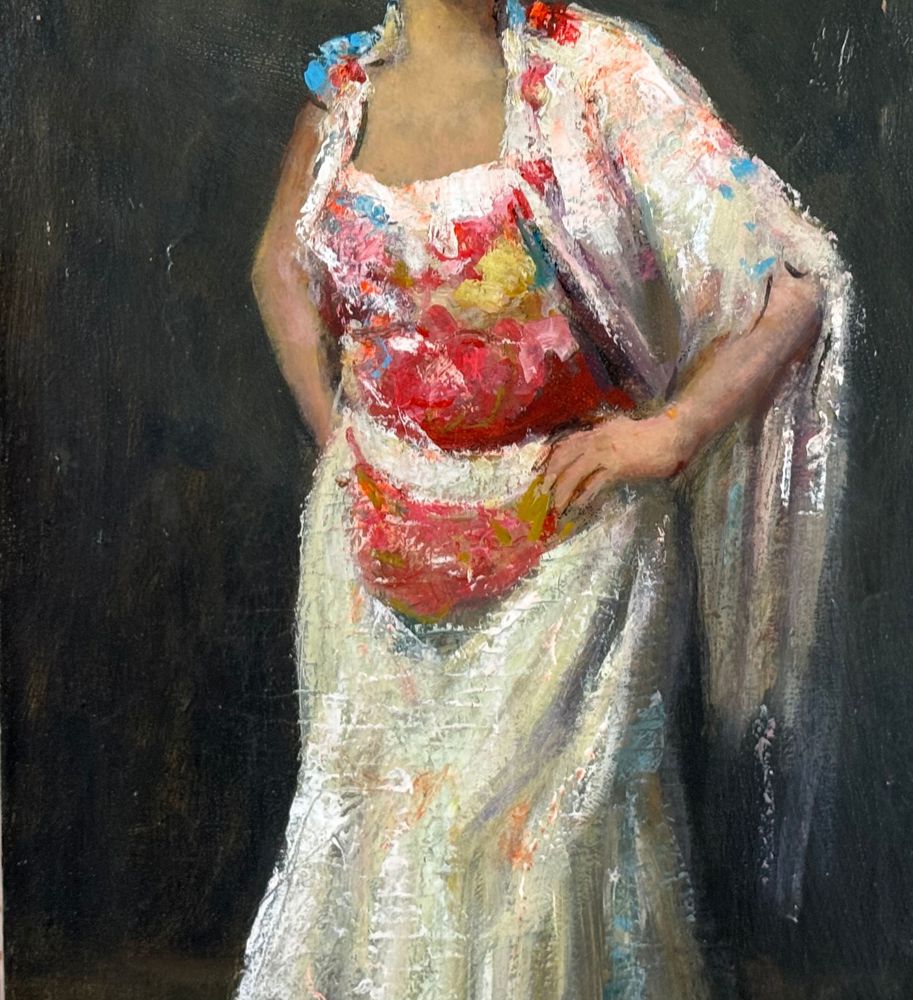 Dipinto olio su tela, periodo XX secolo, scuola Italiana, raffigurante Ritratto di donna. Dimensioni: 60x30 cm. Artista anonimo. Opera in buone condizioni e di ottima qualità artistica.