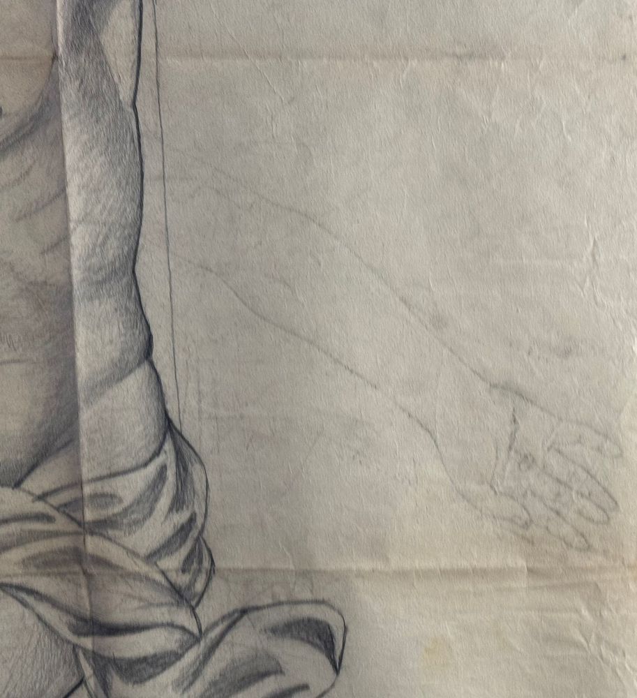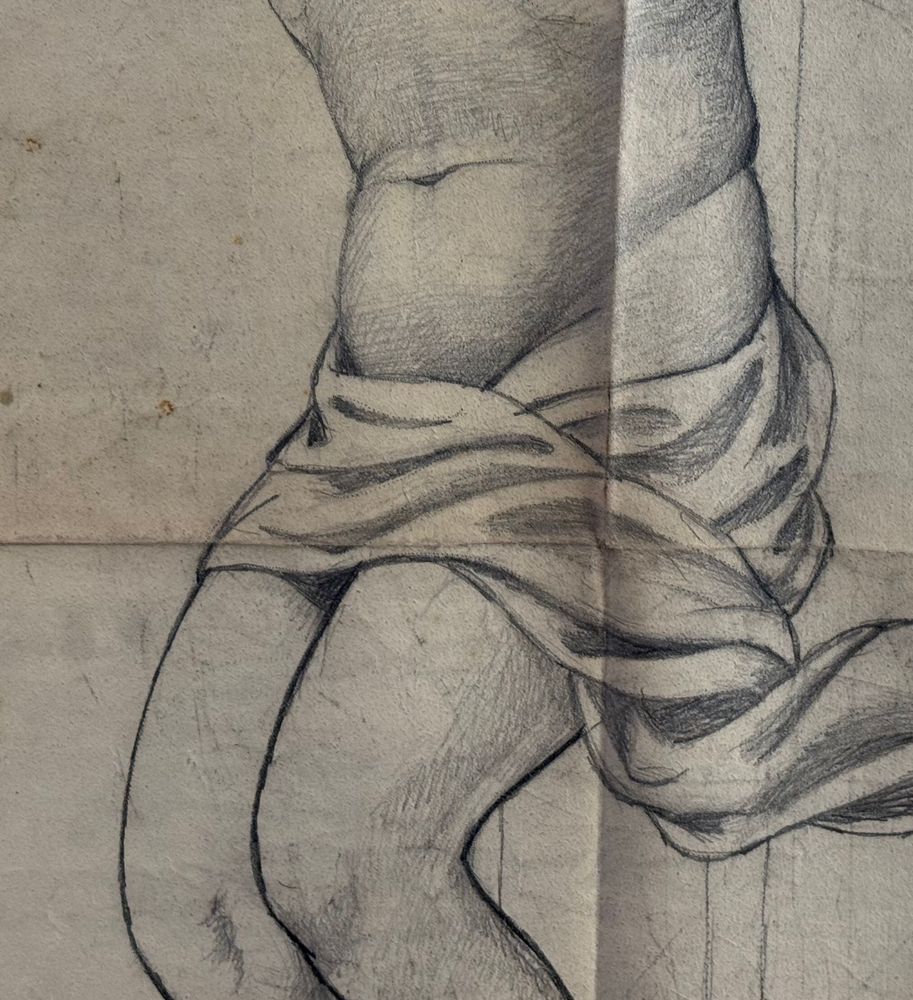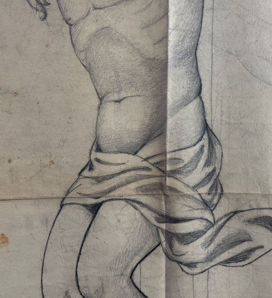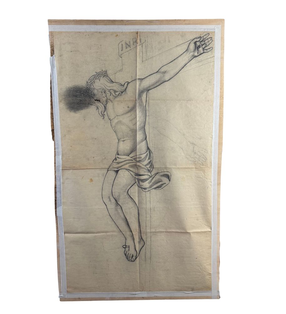 Disegno su carta, periodo accademico XIX secolo scuola Italiana, raffigurante Cristo. Dimensioni: 68x118 cm. Artista anonimo. Opera in buone condizioni con lievi segni di vissuto come da foto allegate.