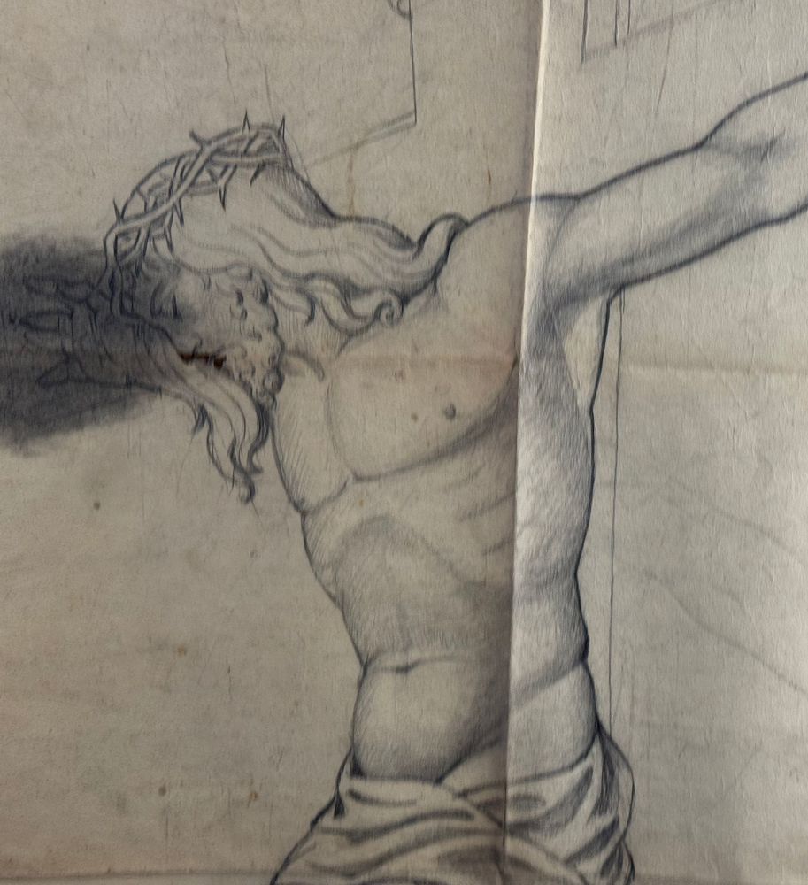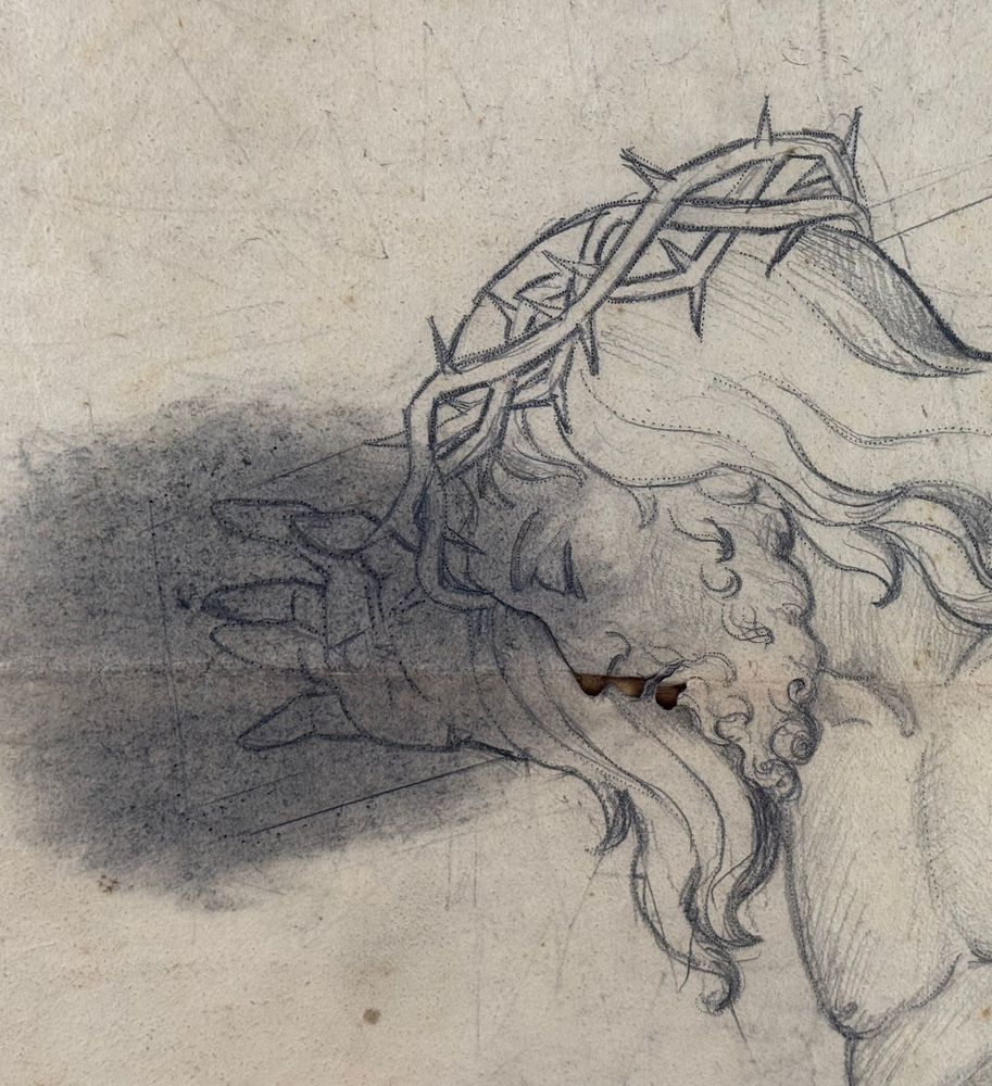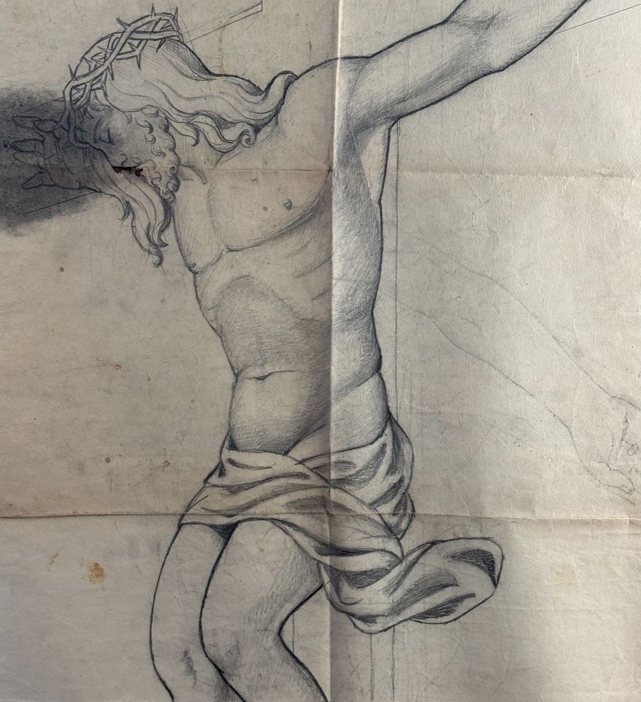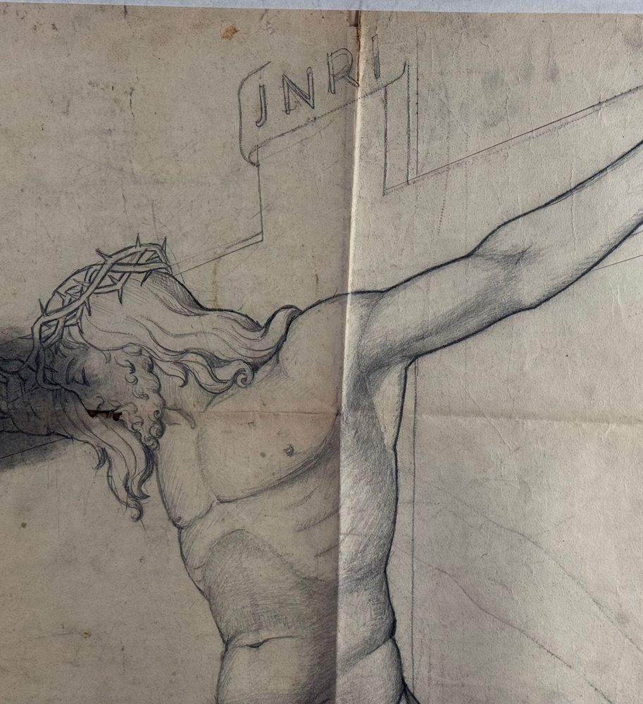 Disegno su carta, periodo accademico XIX secolo scuola Italiana, raffigurante Cristo. Dimensioni: 68x118 cm. Artista anonimo. Opera in buone condizioni con lievi segni di vissuto come da foto allegate.