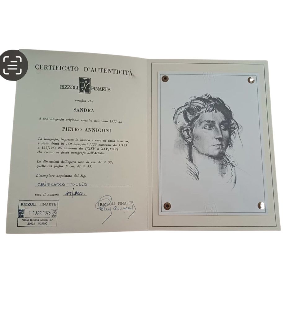 Litografia in bianco e nero impressa a mano, numerati da 1/125. Il lotto presentato porta il numero 89/125 e firma autografata dall'artista in basso a destra Pietro Annigoni. Periodo XX secolo scuola Italiana, raffigurante Ritratto di uomo. Dimensioni compreso cornice: 76x56 cm. Dimensioni opera: 41x53 cm. Si allega certificato autenticità rilasciato da Rizzoli finarte 11 Aprile 1978.