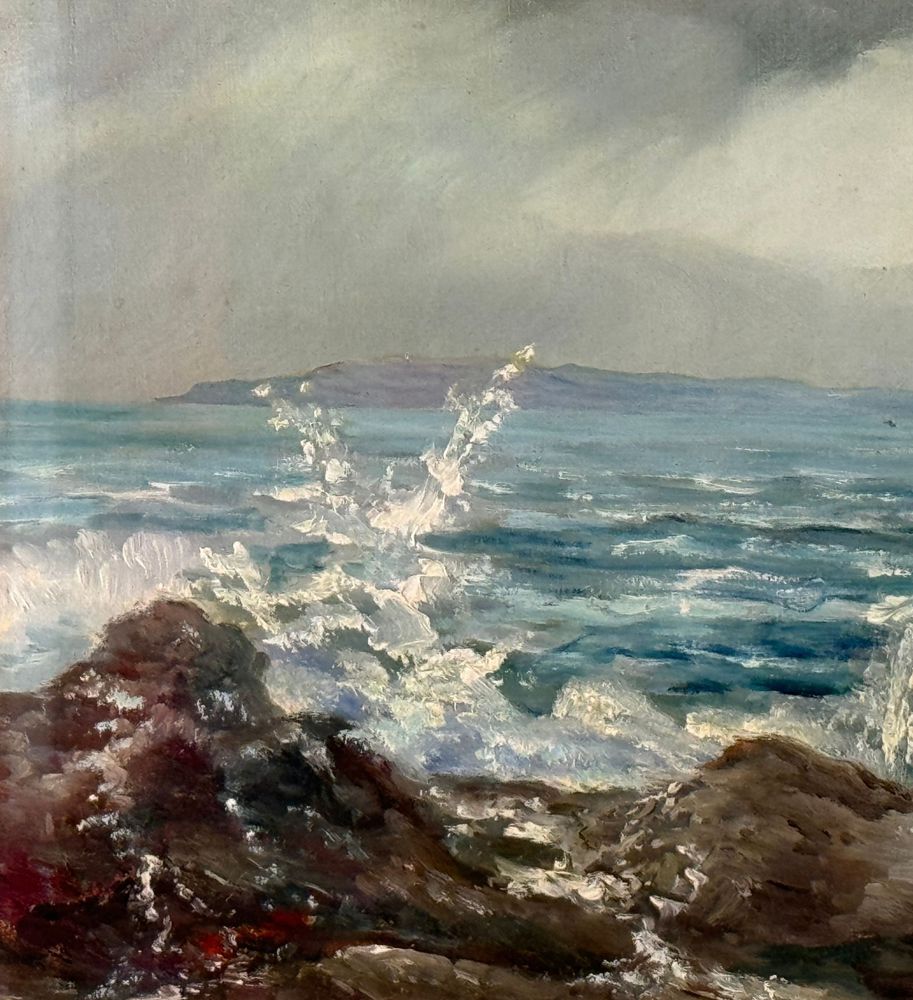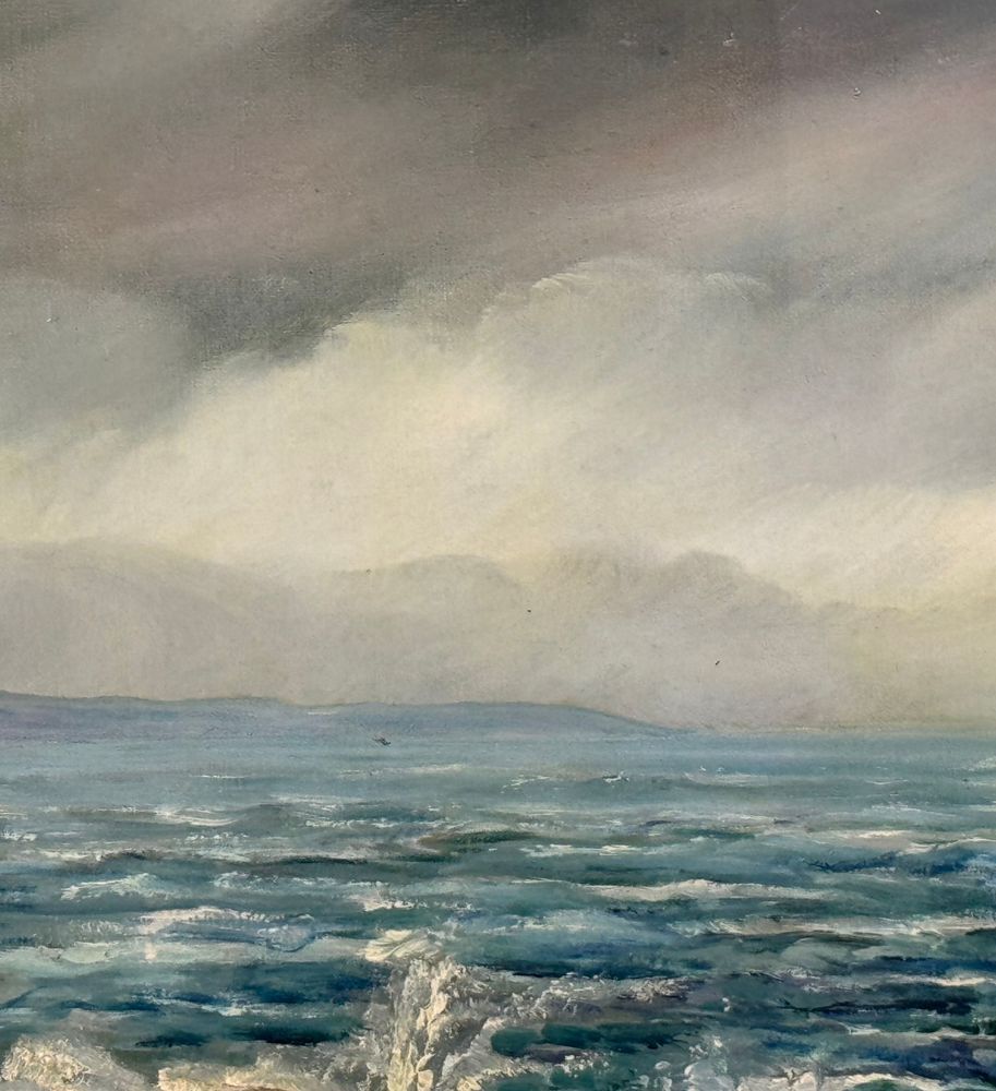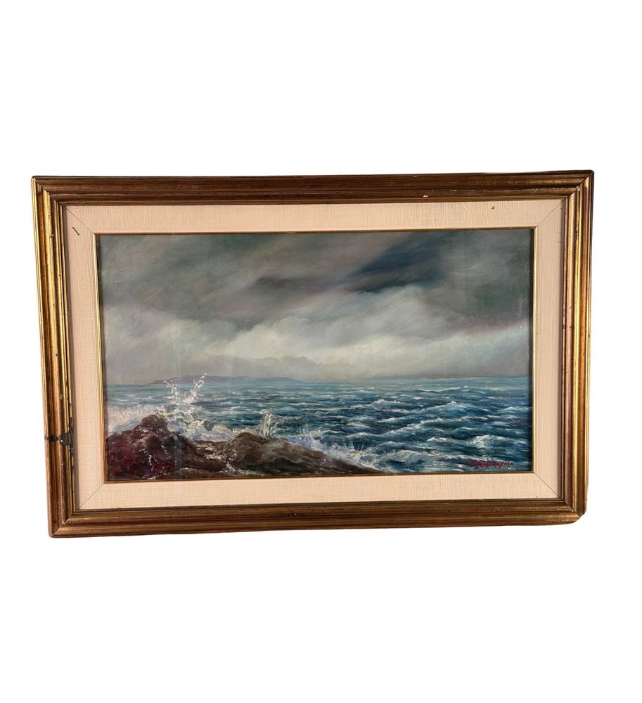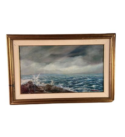 Dipinto olio su cartoncino, periodo XIX/XX secolo scuola Europea, raffigurante Mareggiata. Dimensioni compreso cornice: 84x55 cm. Dimensioni interno cornice: 67x38 cm. Reca firma in basso a destra da artista non identificato. Opera in buone condizioni.
