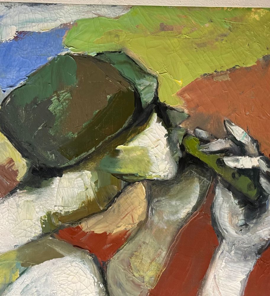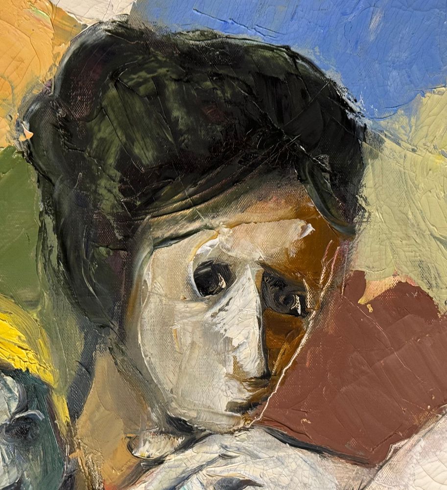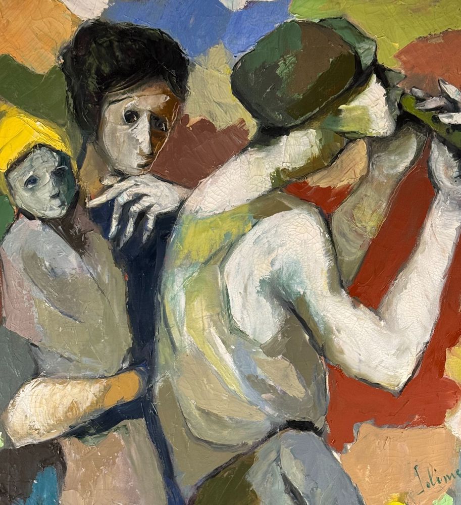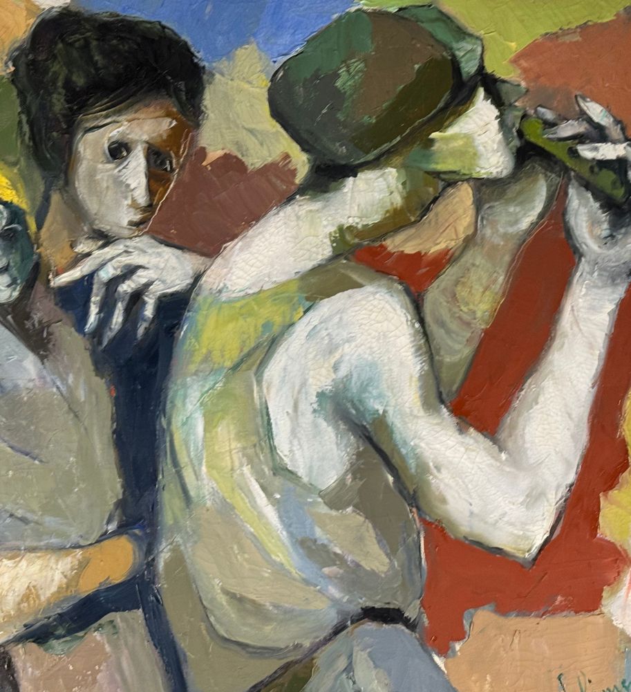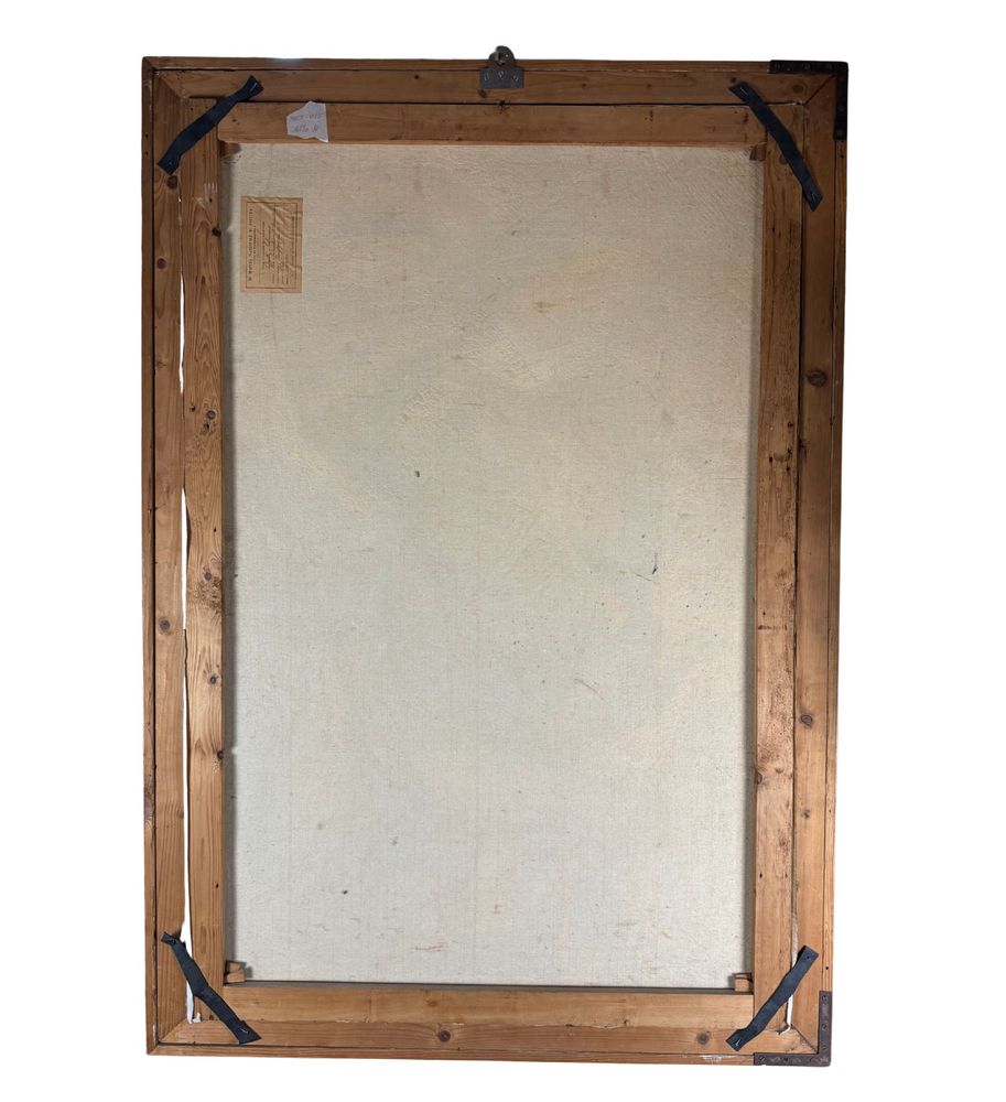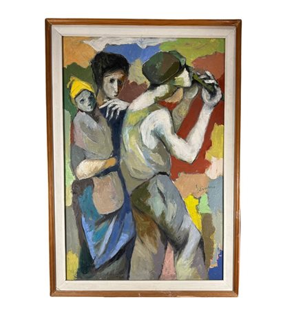 Dipinto olio su tela, periodo XX secolo scuola Italiana, raffigurante Personaggi. Dimensioni compreso cornice: 91x132 cm. Dimensioni interno cornice: 80x120 cm. Reca firma laterale a destra e autentica sul retro Oreste Solimeno. Opera in buone condizioni.