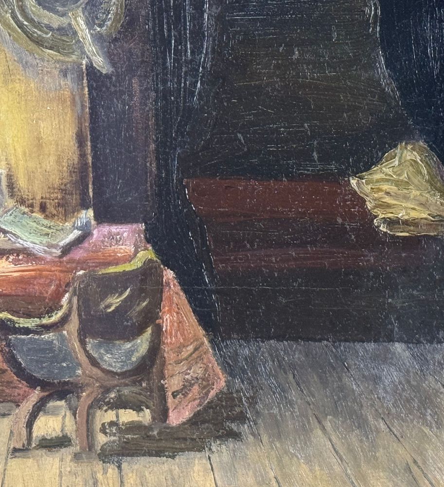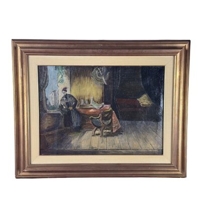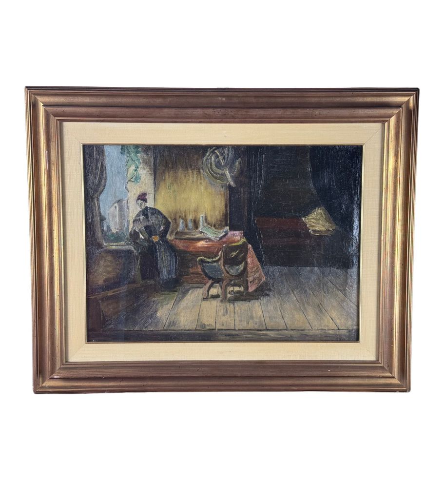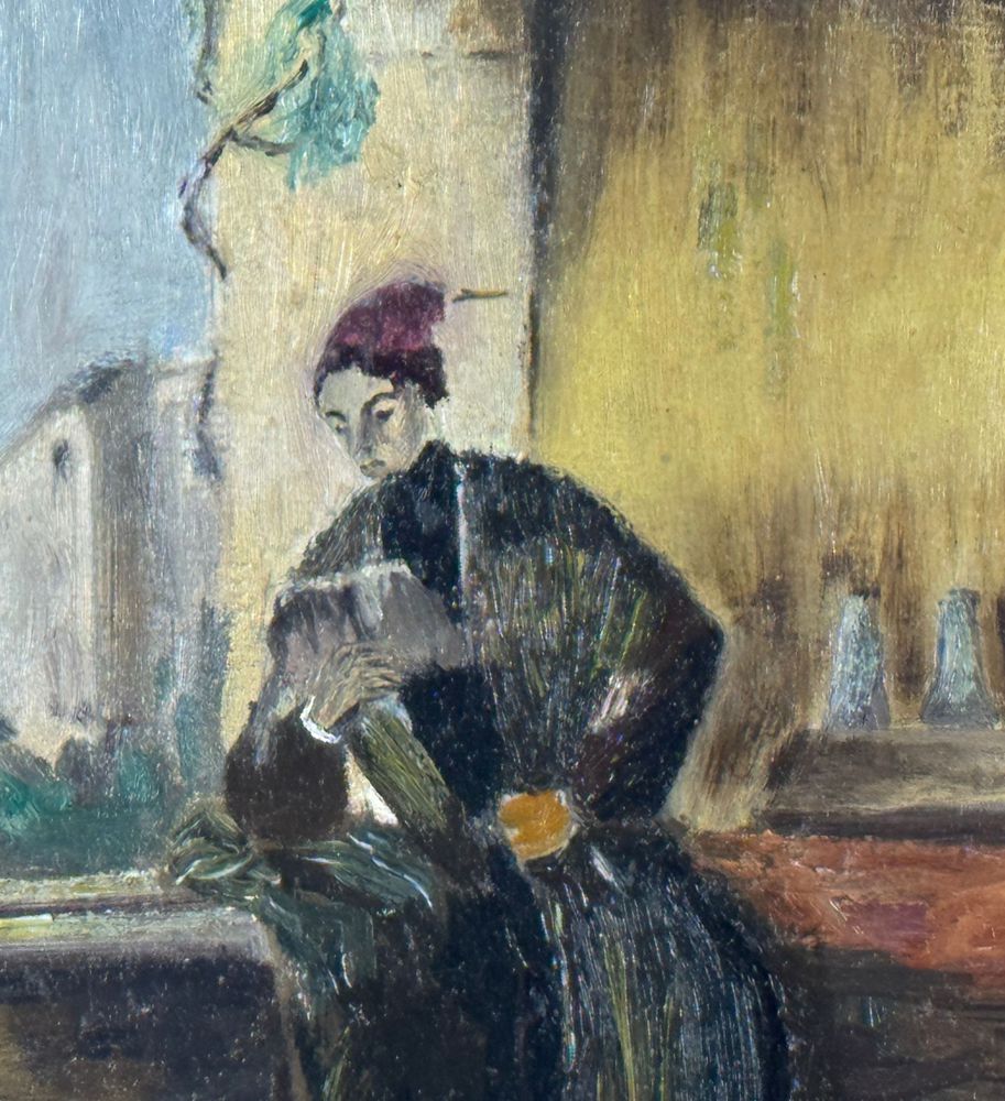 Dipinto olio su tela, periodo XX secolo scuola Italiana, raffigurante Donna alla finestra (Scena di interno). Dimensioni compreso cornice: 78x62,5 cm. Dimensioni interno cornice: 59x43 cm. Da artista anonimo. Opera in buone condizioni.