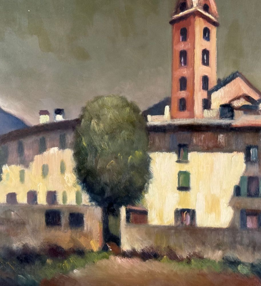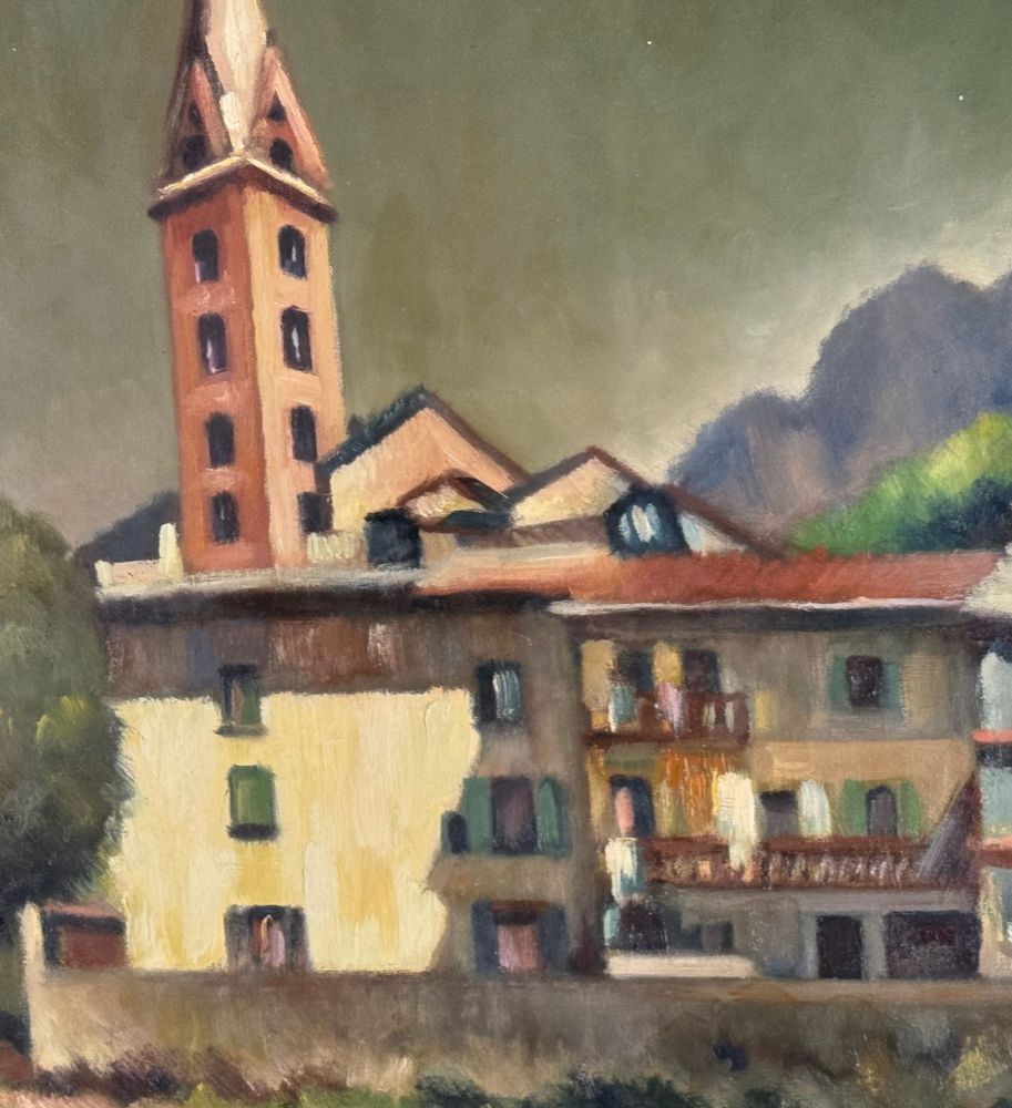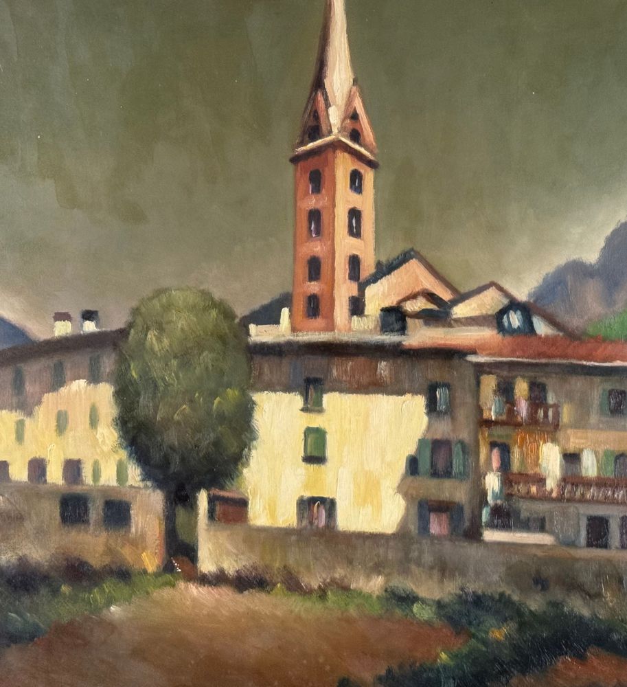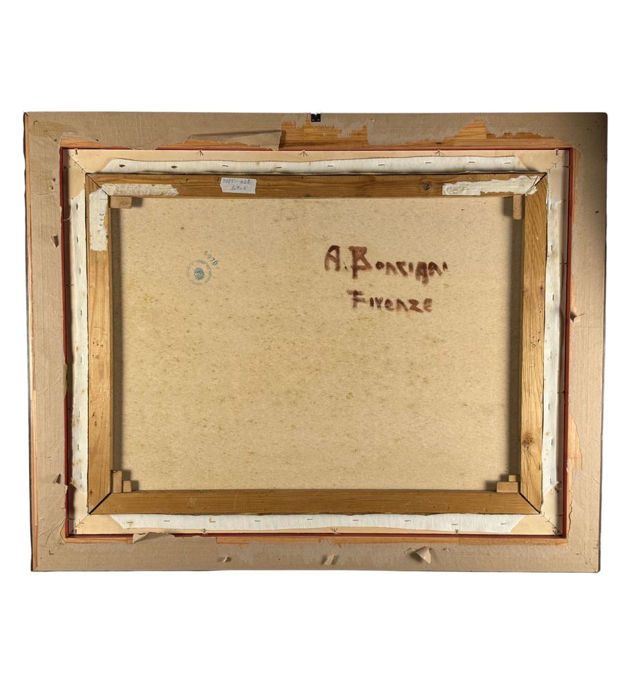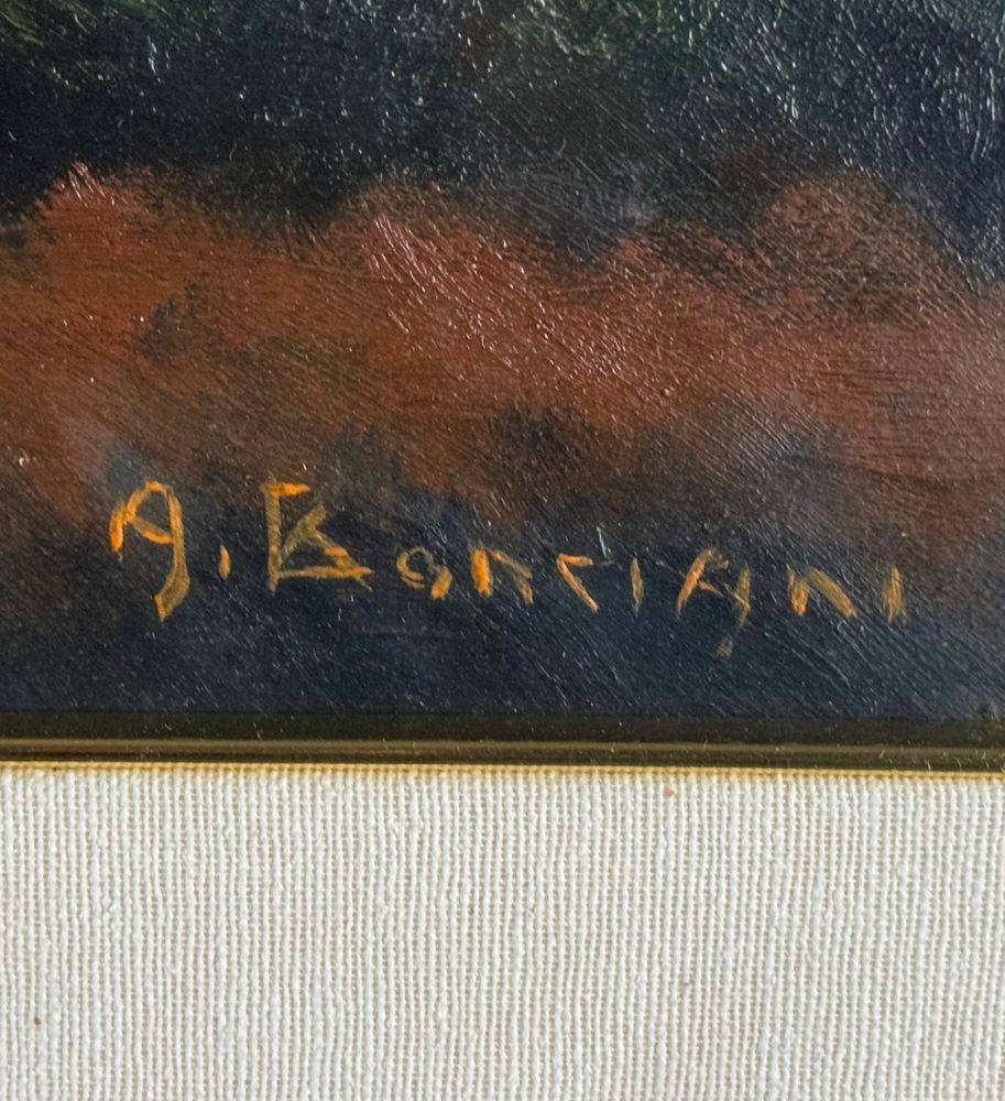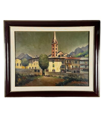 Dipinto olio su tela, periodo XX secolo scuola Italiana, raffigurante Scorcio di paese. Dimensioni compreso cornice: 102x82 cm. Dimensioni interno cornice: 80x60 cm. Reca firma in basso a destra A. Borciani. Opera in buone condizioni.