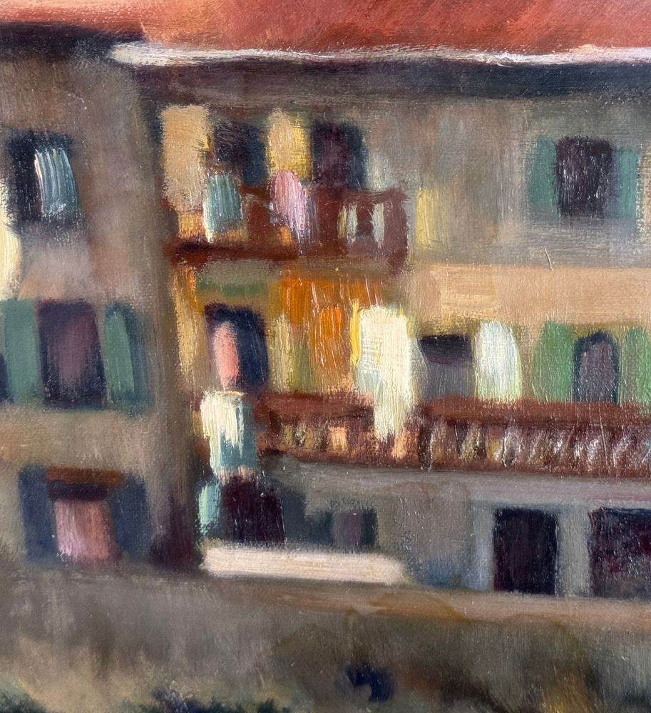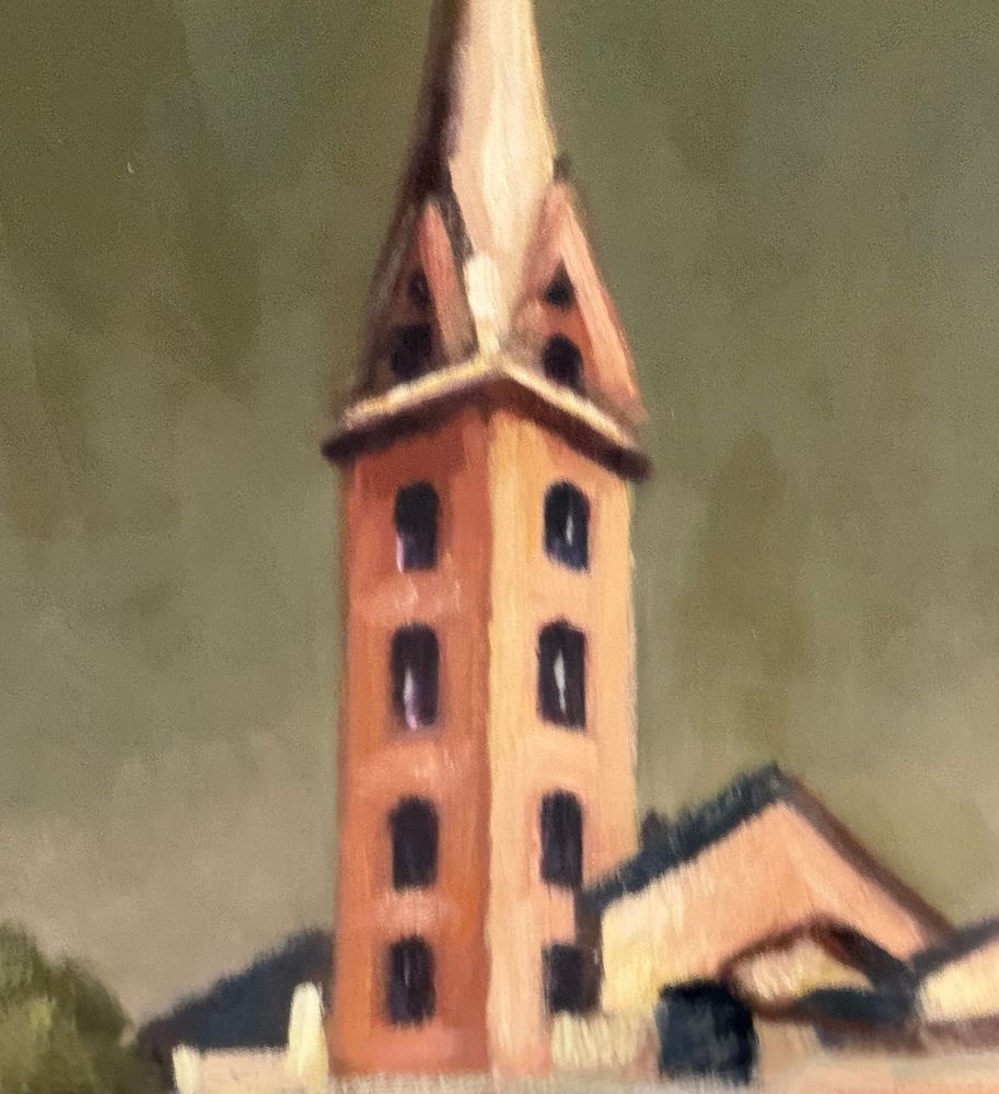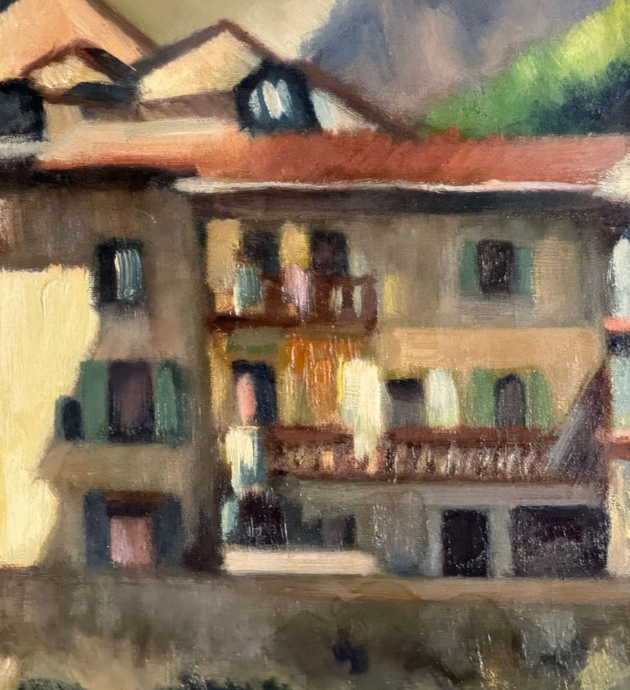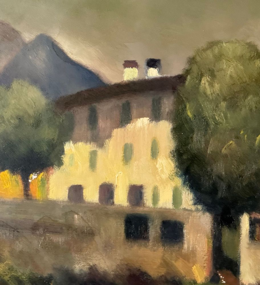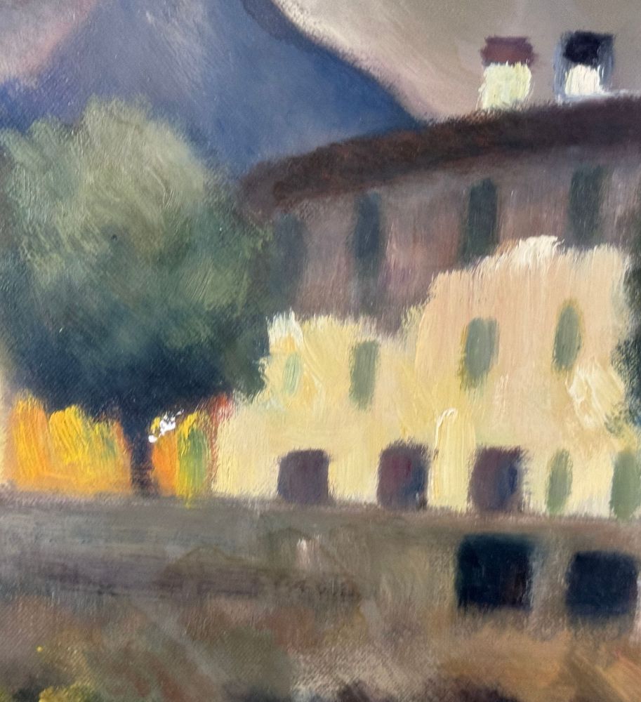 Dipinto olio su tela, periodo XX secolo scuola Italiana, raffigurante Scorcio di paese. Dimensioni compreso cornice: 102x82 cm. Dimensioni interno cornice: 80x60 cm. Reca firma in basso a destra A. Borciani. Opera in buone condizioni.