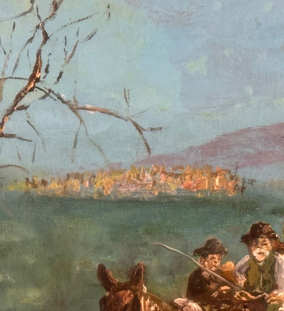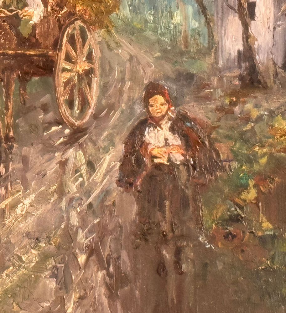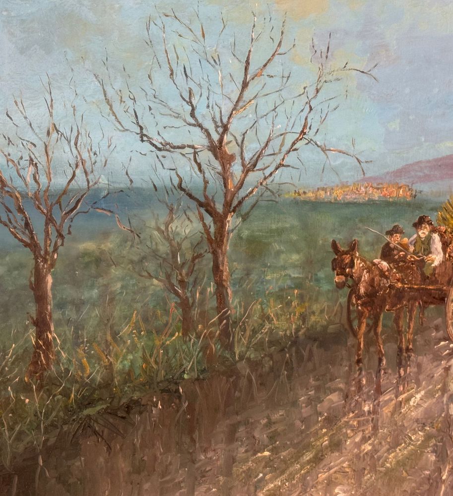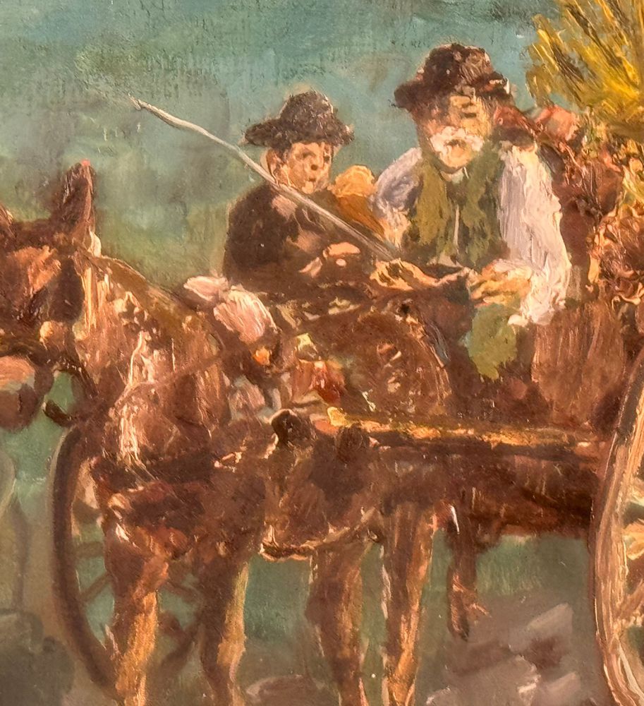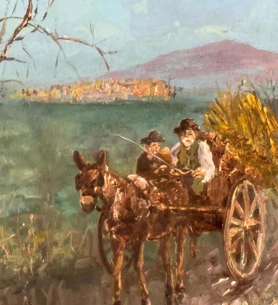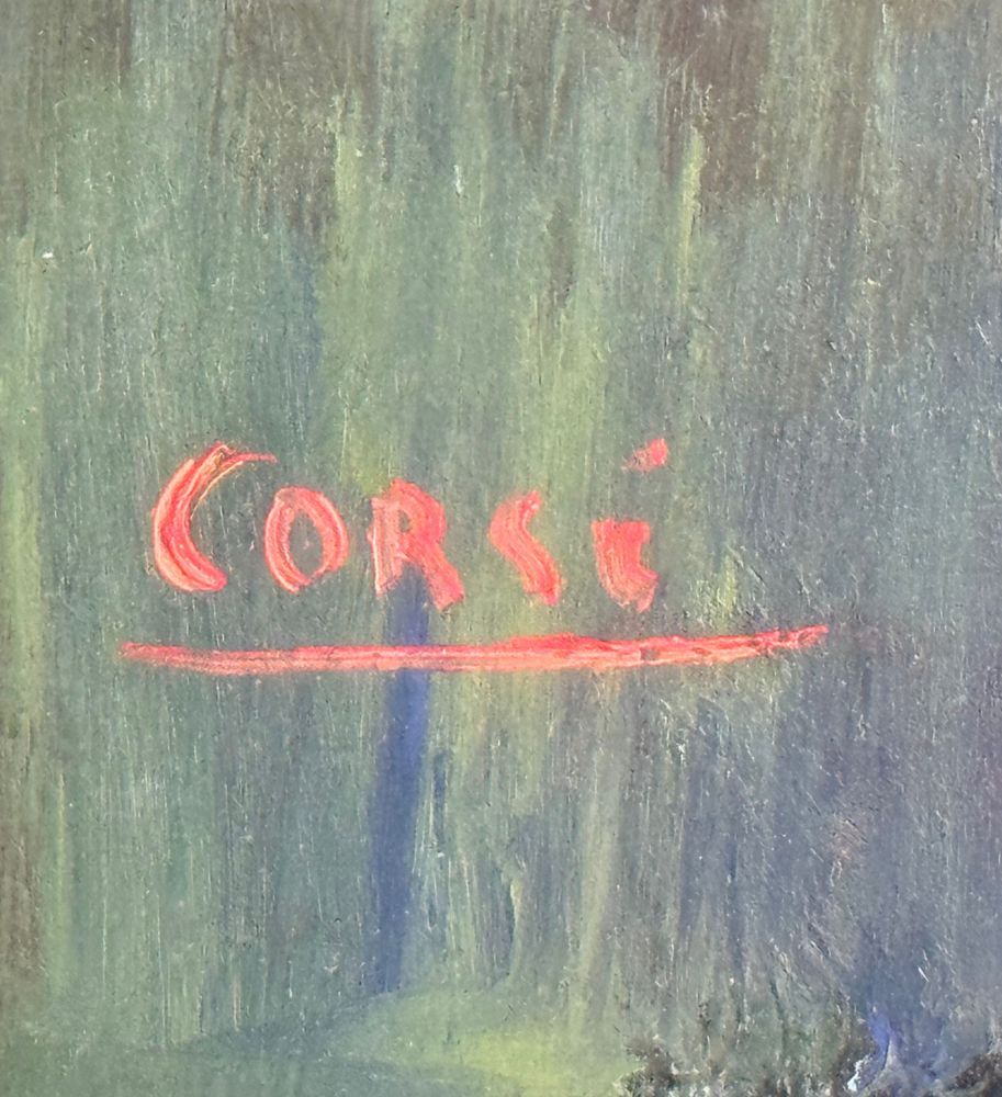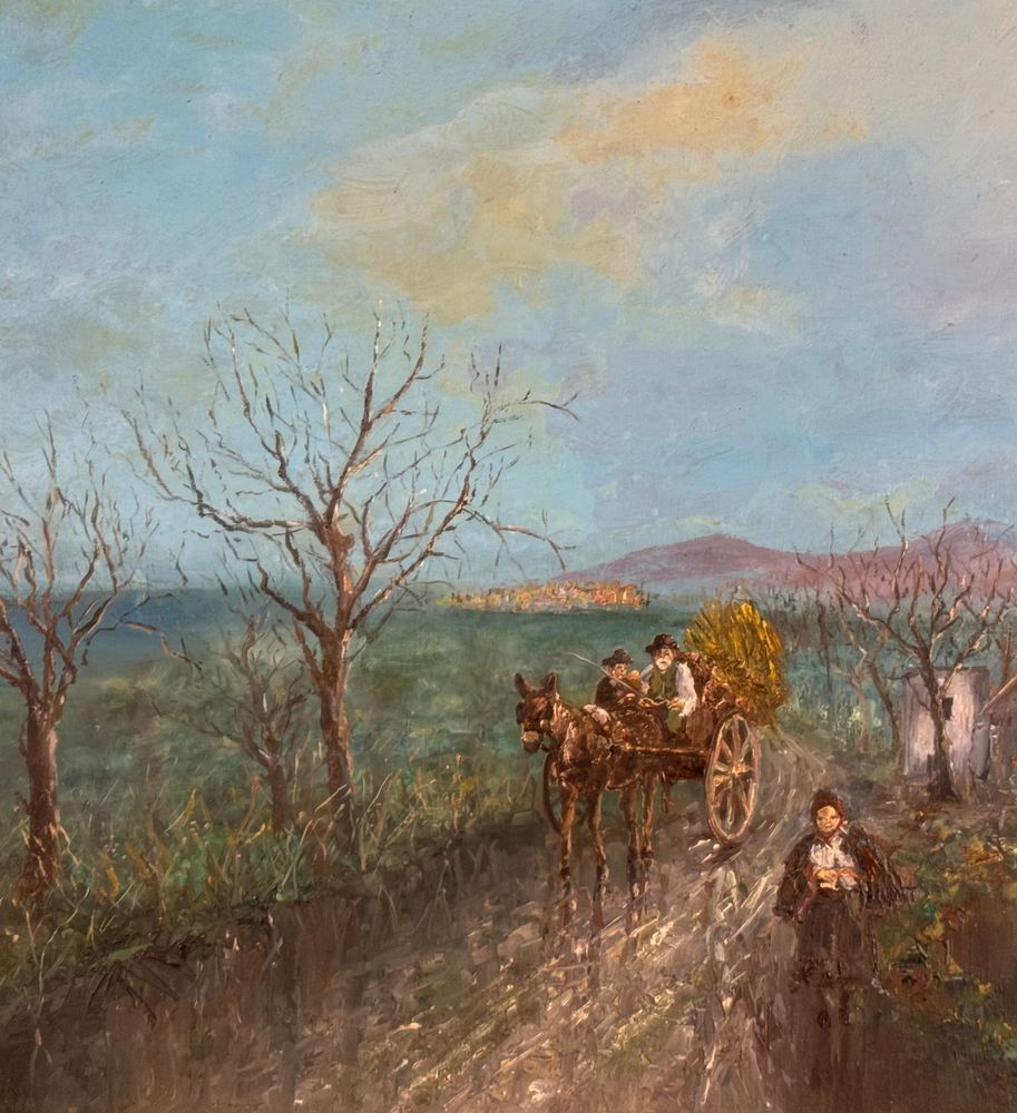 Dipinto olio su tavola, periodo XX secolo scuola Italiana, raffigurante Strada di campagna con personaggi. Dimensioni compreso cornice: 99x78 cm. Dimensioni interno cornice: 70x50 cm. Reca firma in basso a destra Corsi. Opera in buone condizioni.