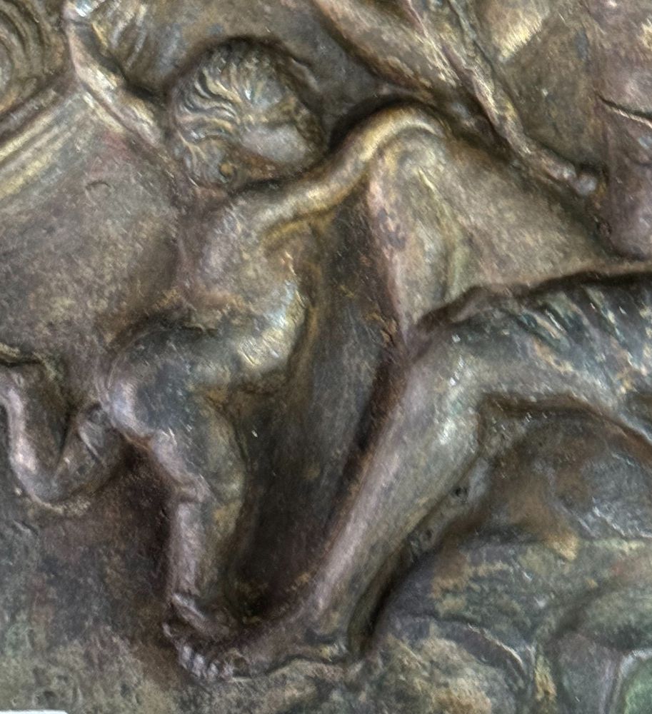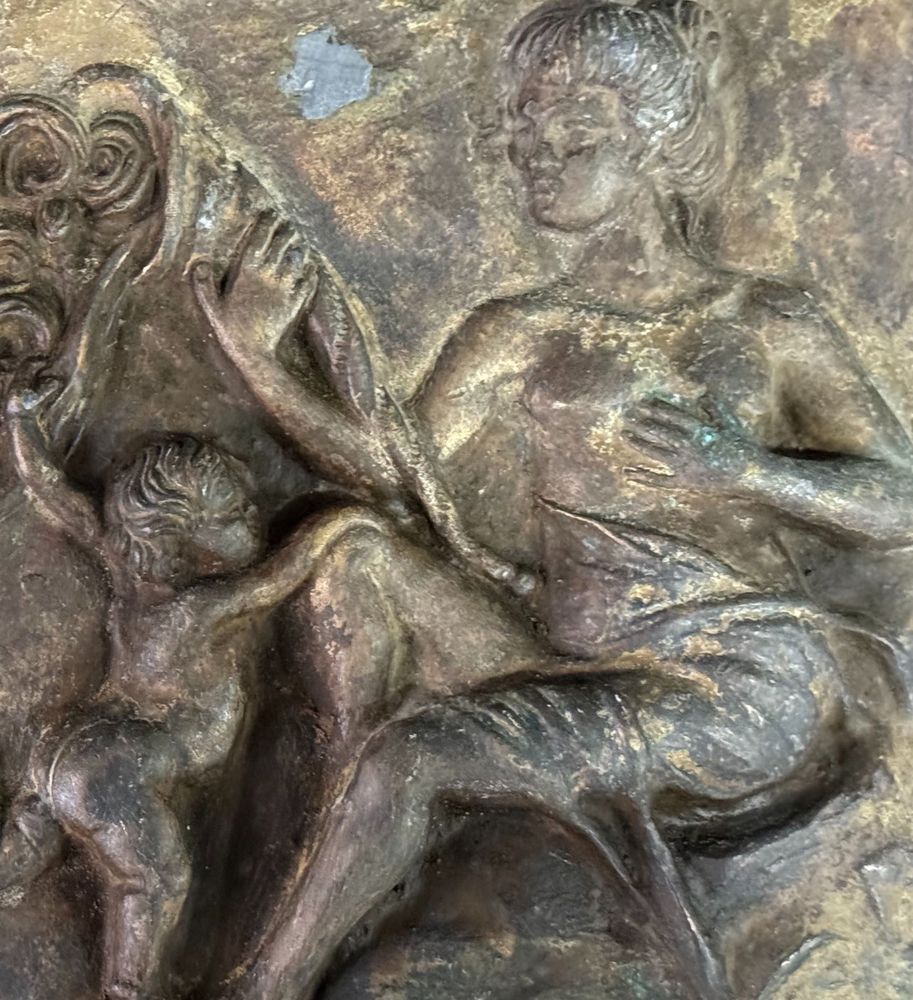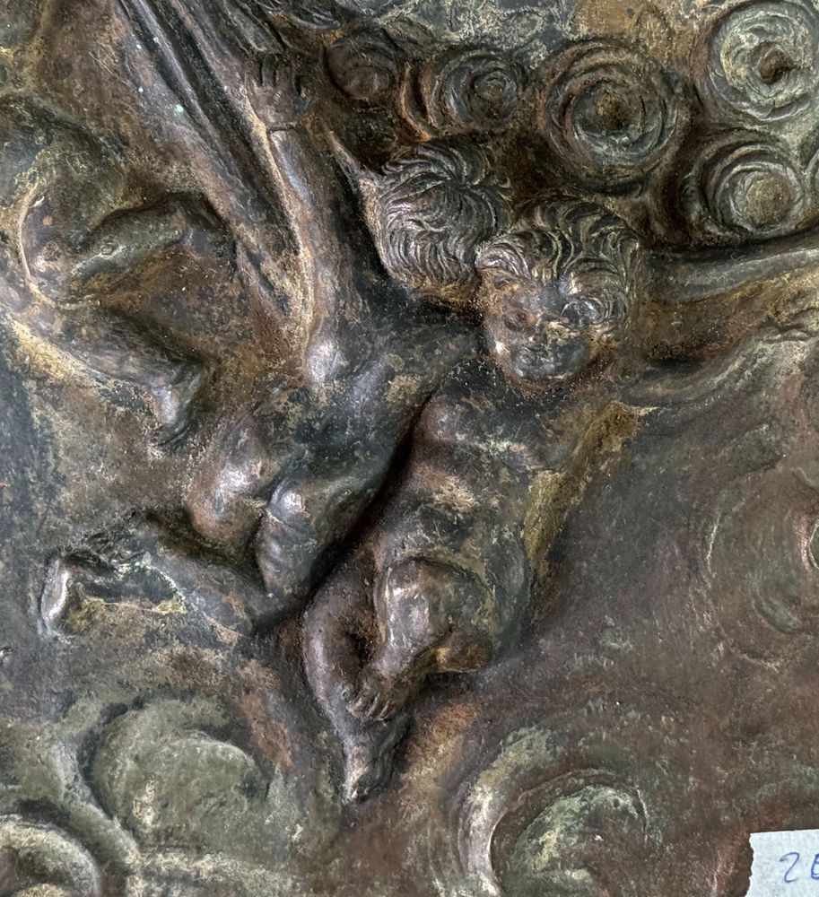 Antica placca in bronzo a rilievo, periodo XIX secolo raffigurante Allegoria con bambini. Dimensioni: 51x29 cm. Da segnalare un restauro nella parte centrale come da foto allegate.