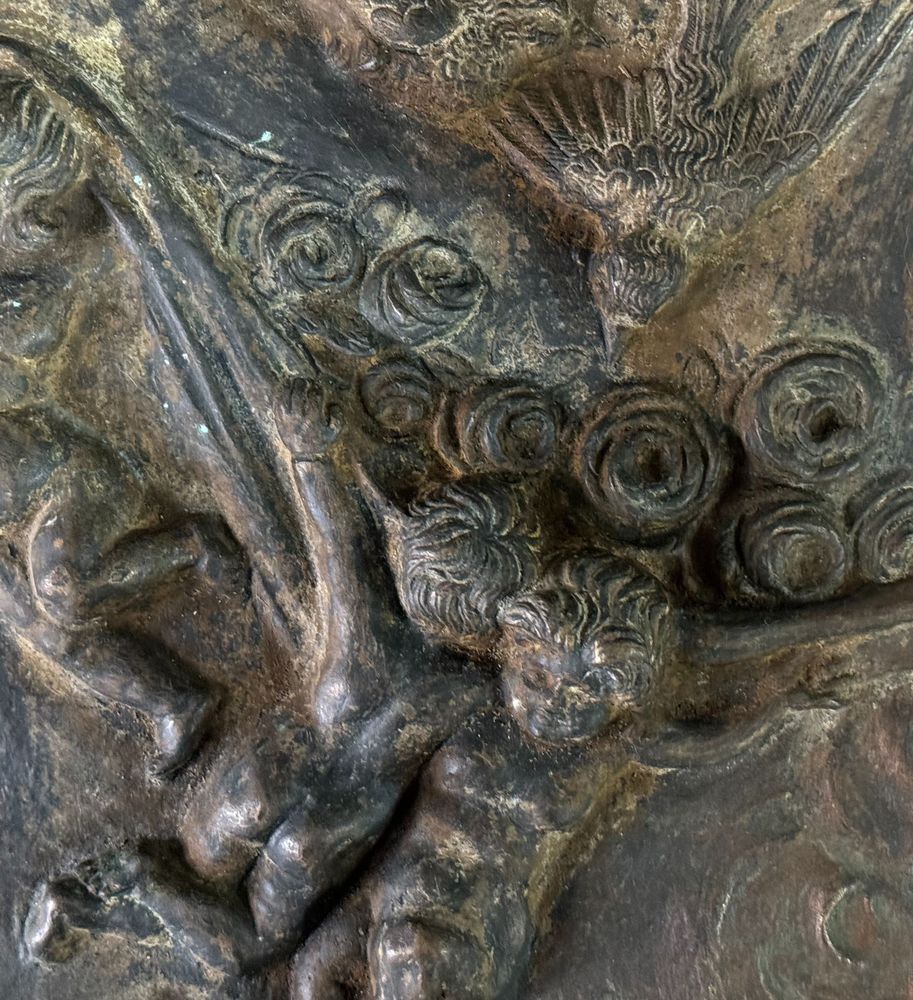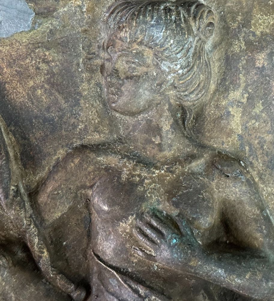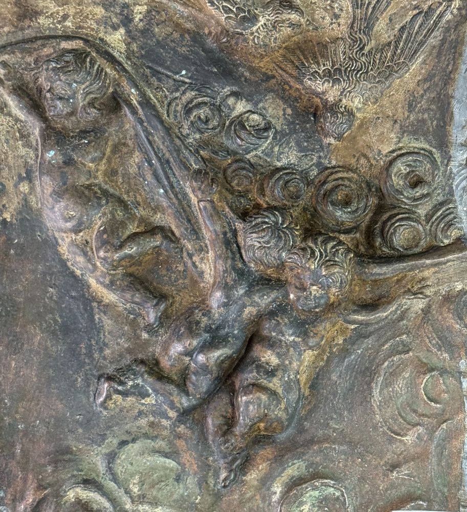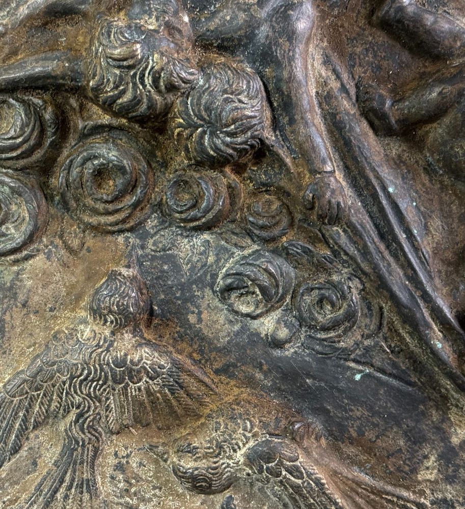 Antica placca in bronzo a rilievo, periodo XIX secolo raffigurante Allegoria con bambini. Dimensioni: 51x29 cm. Da segnalare un restauro nella parte centrale come da foto allegate.