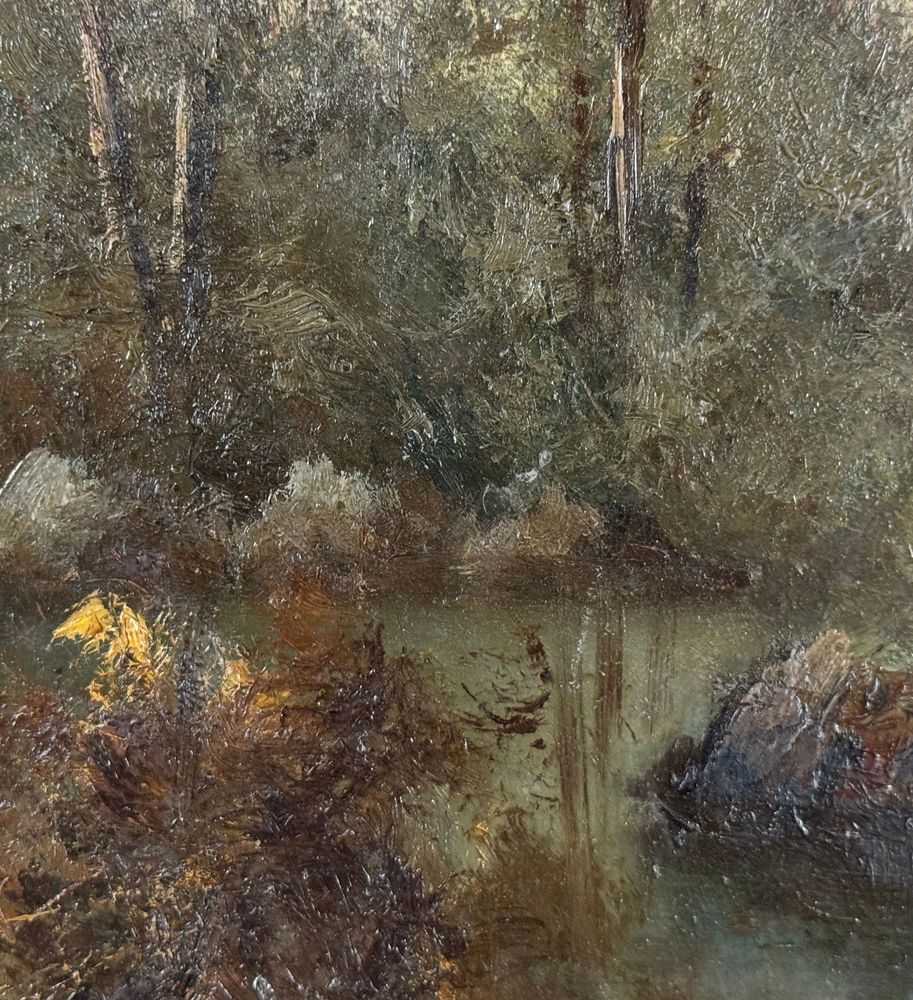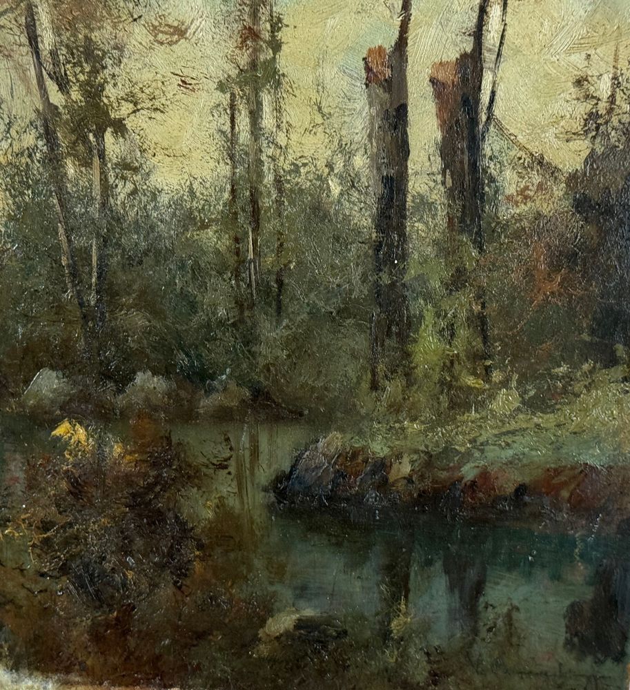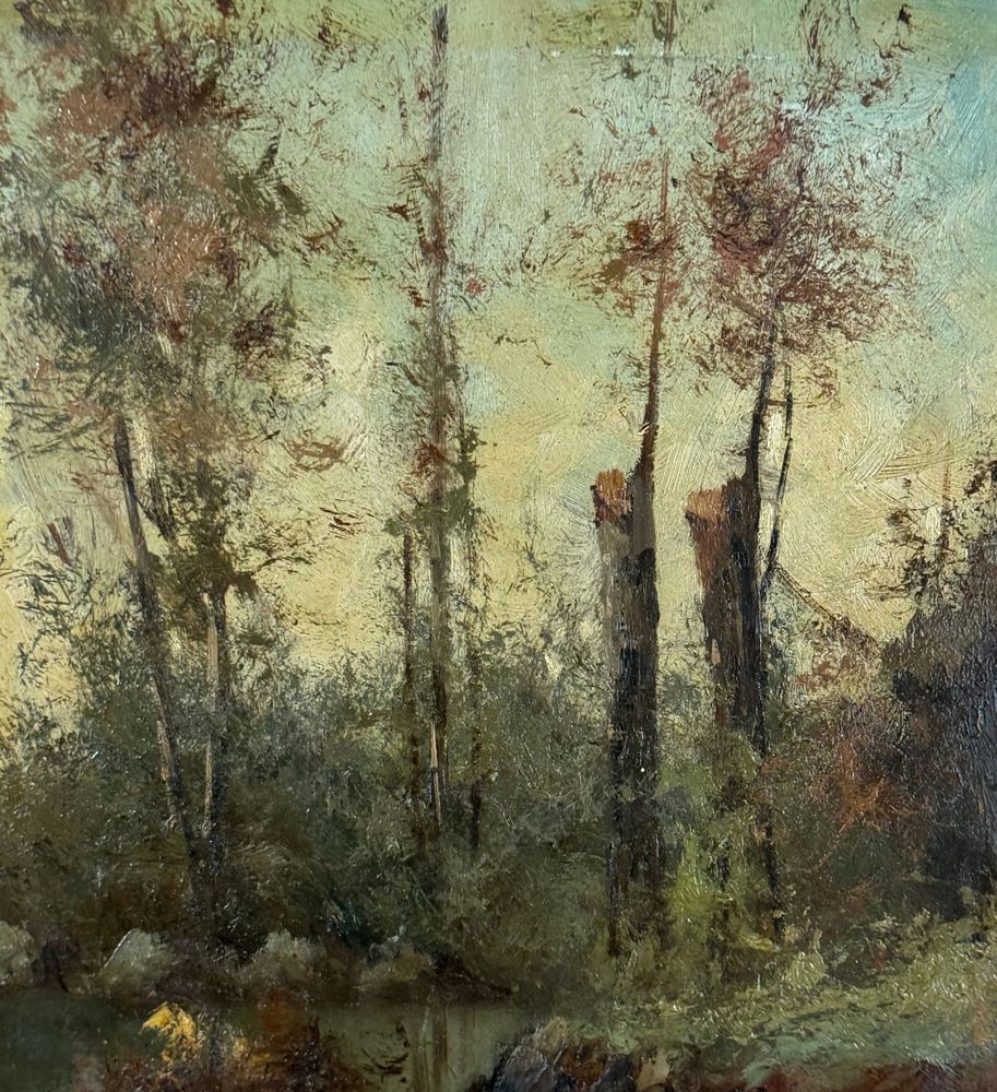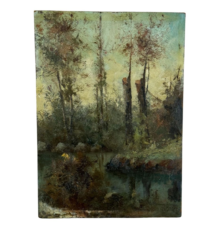 Dipinto olio su pannello, periodo XX secolo scuola Italiana, raffigurante Paesaggio con lago. Dimensioni: 35,5x25,5 cm. Reca firma in basso a destra da artista non identificato. Opera in buone condizioni e di ottima qualità artistica, con lievi segni di vissuto come da foto allegate.