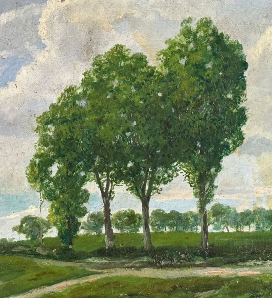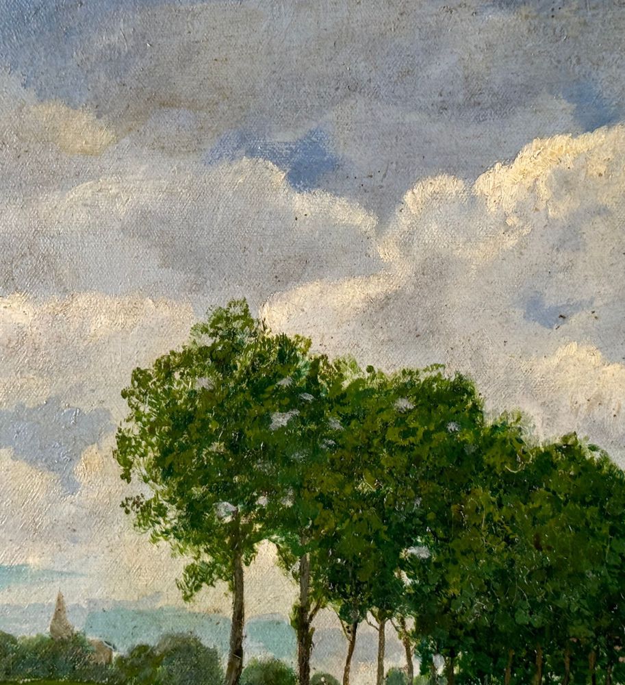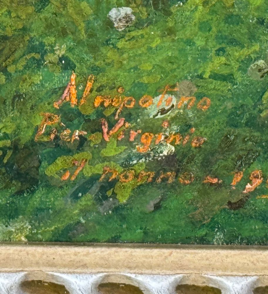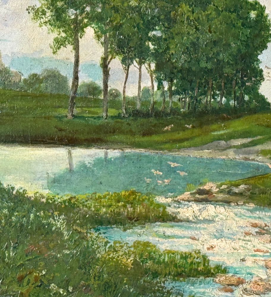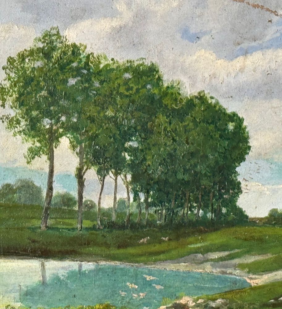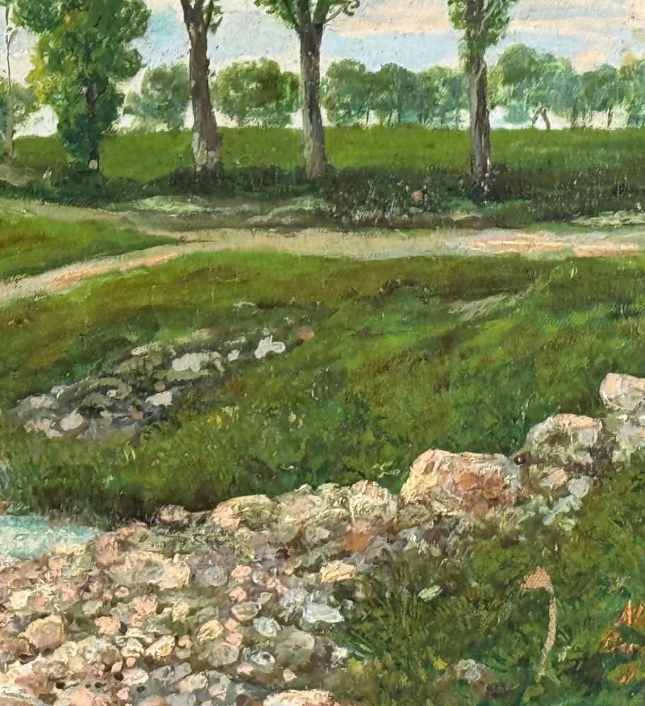 Dipinto olio su tela, periodo primi anni del XX secolo scuola Italiana, raffigurante Paesaggio. Dimensioni compreso cornice: 67x51 cm. Dimensioni interno cornice: 55x40 cm. Reca firma in basso a destra da artista non identificato. Opera in buone condizioni con lievi segni di vissuto come da foto allegate.