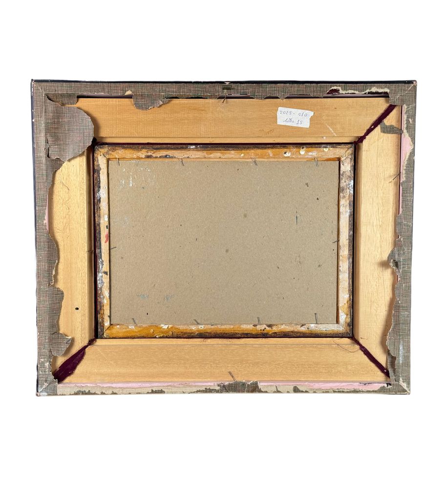 Dipinto olio su cartoncino, periodo XX secolo, scuola Italiana, raffigurante SENZA TITOLO. Dimensioni compreso cornice: 58x48 cm. Dimensioni interno cornice: 25x35 cm. Reca firma in basso a destra Zizza. Opera in buone condizioni.