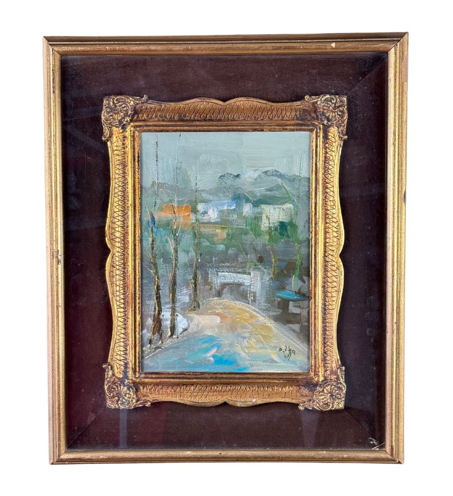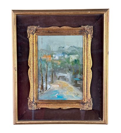 Dipinto olio su cartoncino, periodo XX secolo, scuola Italiana, raffigurante Strada di campagna. Dimensioni compreso cornice: 49x59 cm. Dimensioni interno cornice: 25x35 cm. Reca firma in basso a destra Zizza. Opera in buone condizioni.