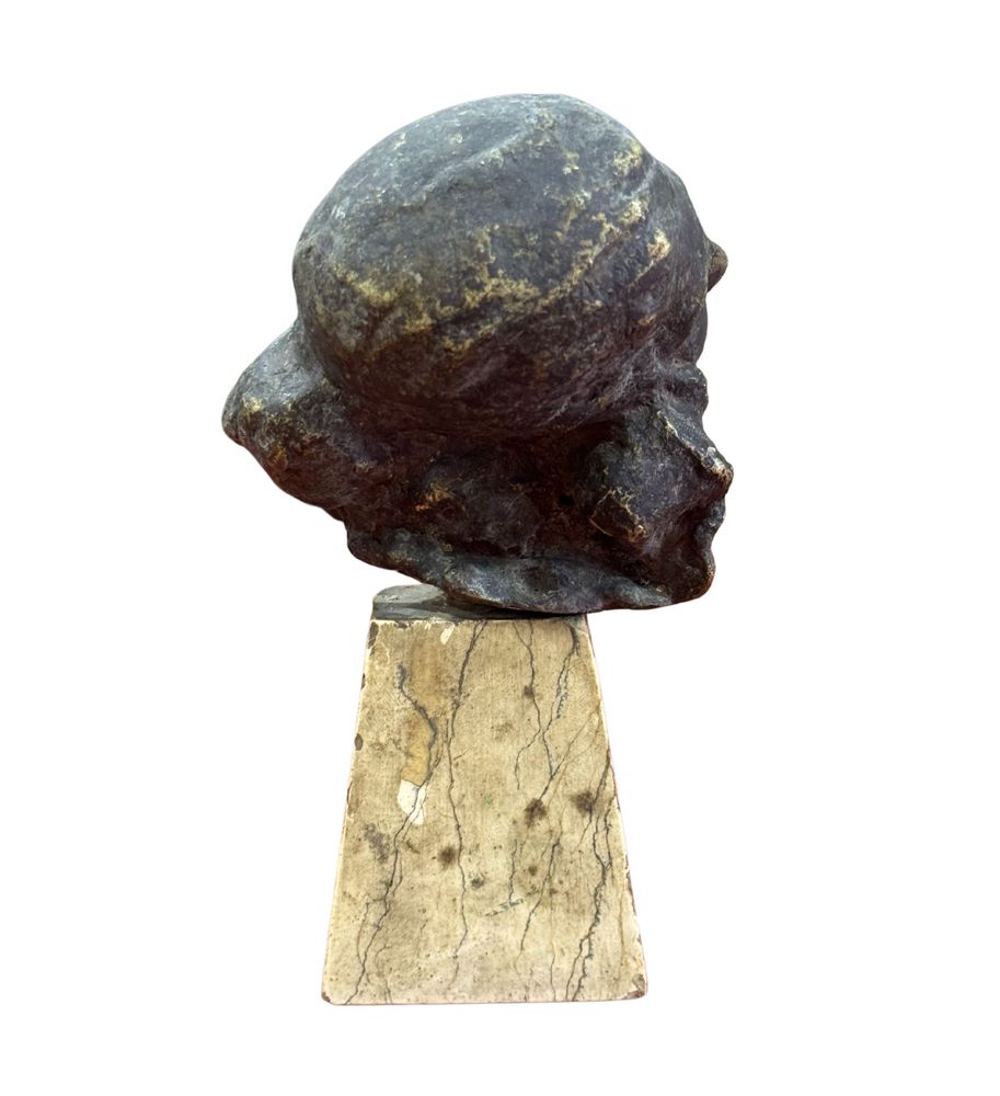 Scultura in bronzo a cera persa, periodo XX secolo, raffigurante Volto di donna. Dimensioni: h16x9x9 cm. Scultura in buone condizioni.