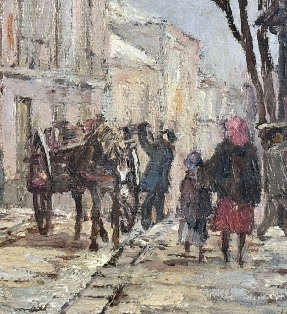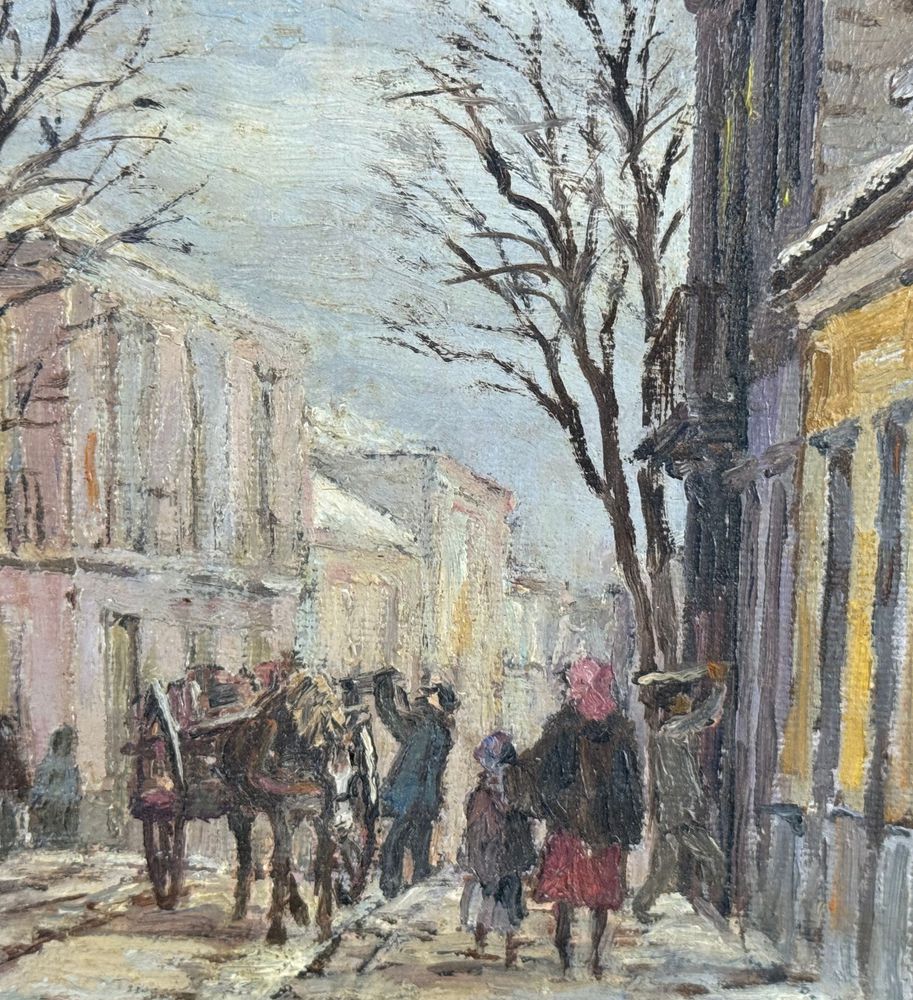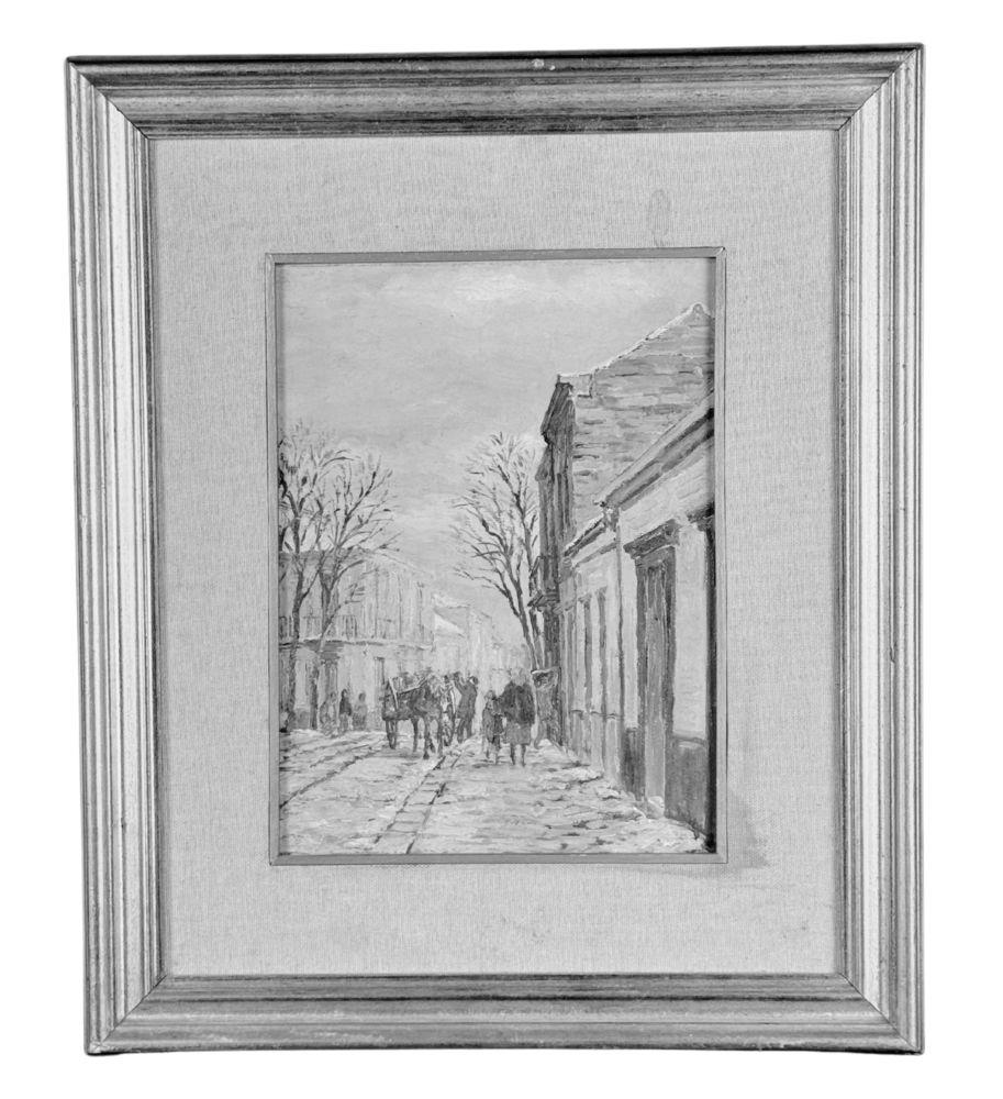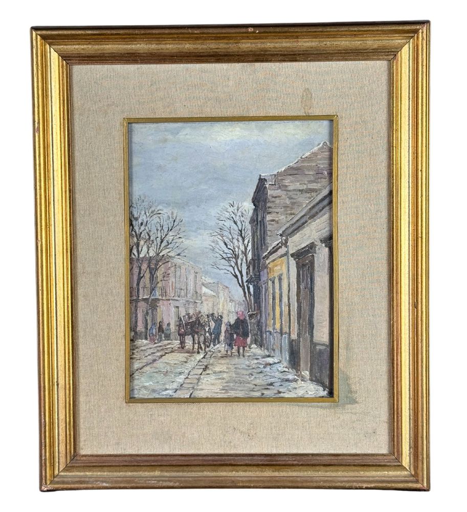 Dipinto olio su tavola, periodo XX secolo scuola Italiana, raffigurante Stradina con personaggi. Dimensioni compreso cornice: 38x45 cm. Dimensioni interno cornice: 28x21 cm. Da artista anonimo. Opera in buone condizioni.