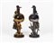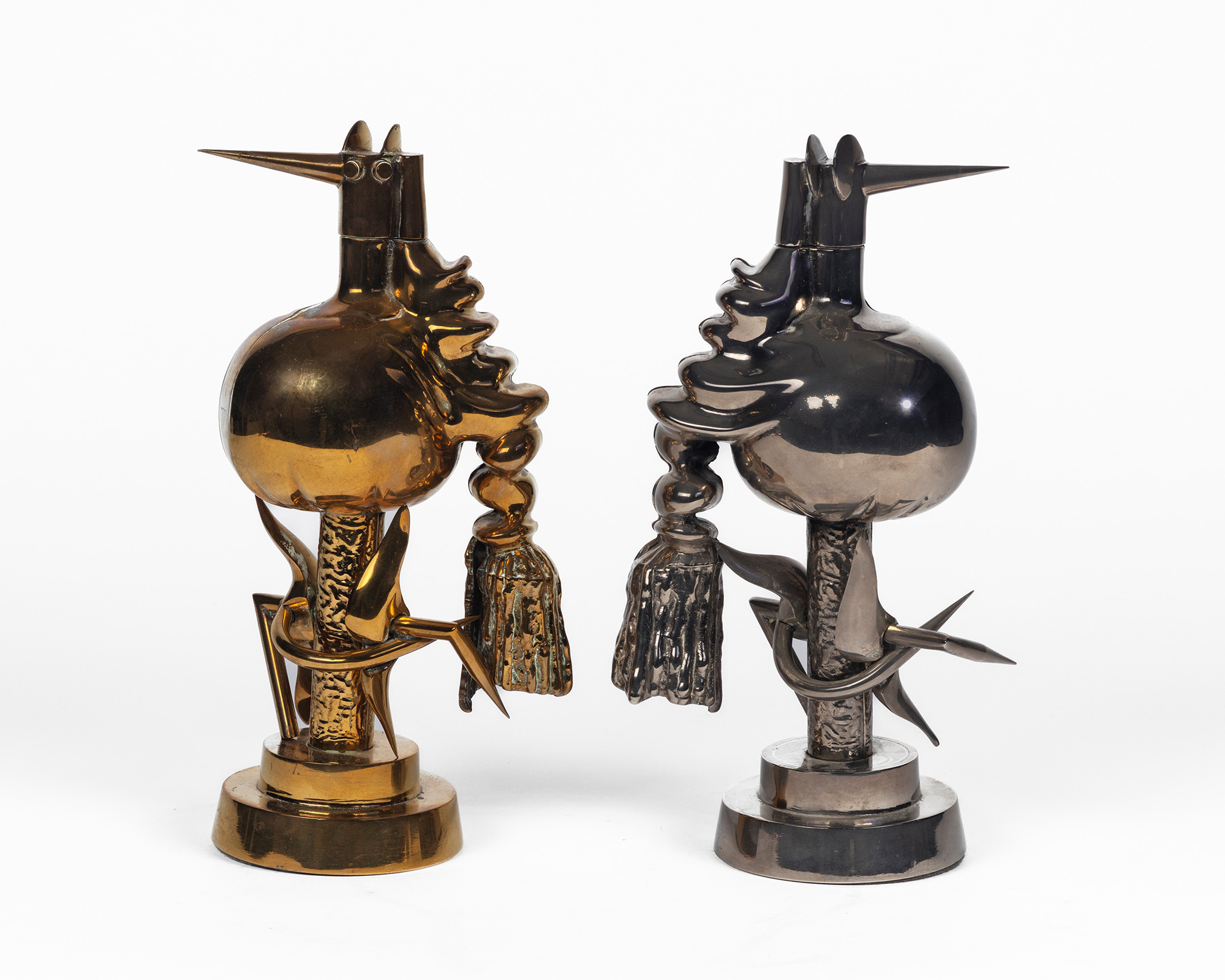 coppia di multipli in ottone dorato e in metallo cromato argentato, ess. 84/500A e 84/500B