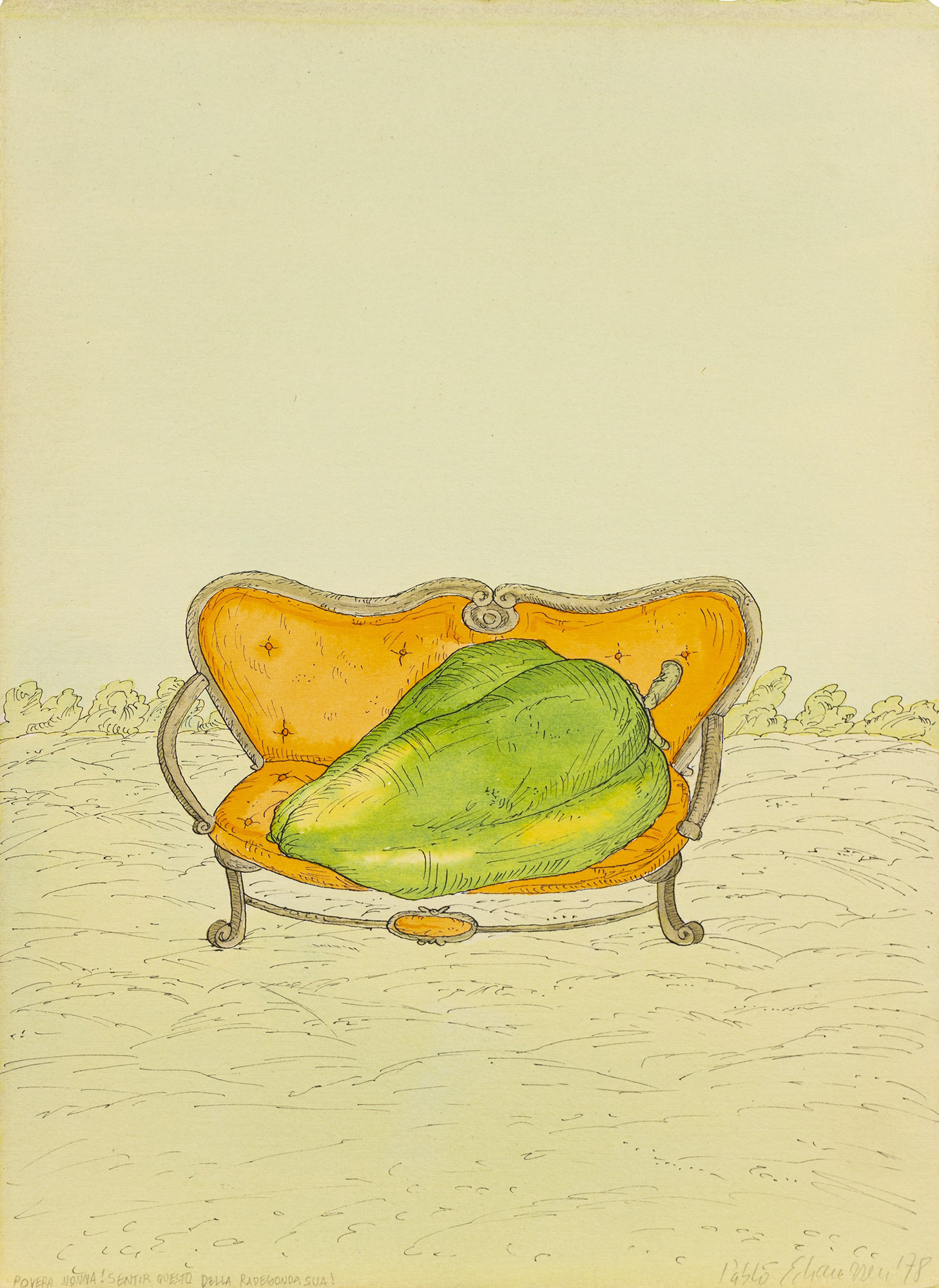 Pablo Echaurren (Roma 1951) - Il peperone sul divano, 1978