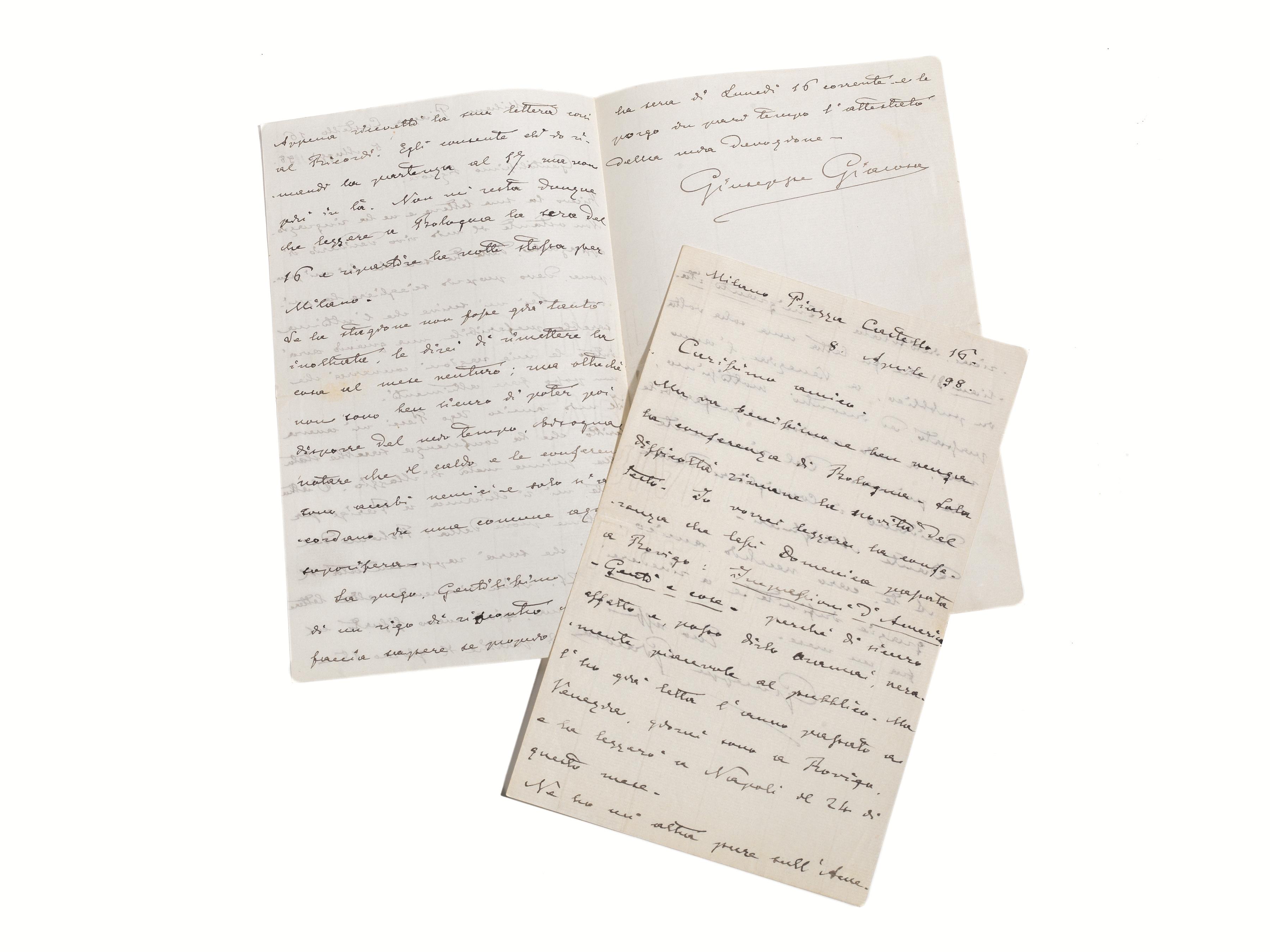 GIACOSA, Giuseppe (1847-1906, drammaturgo e librettista). Due lettere...