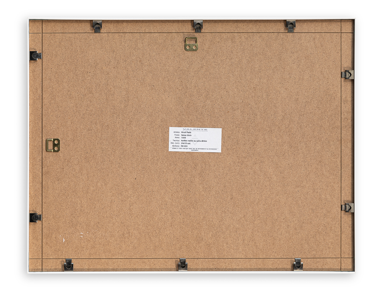 Etichetta della Galleria Valente Arte Contemporanea (SV) al retro del cartone protettivo