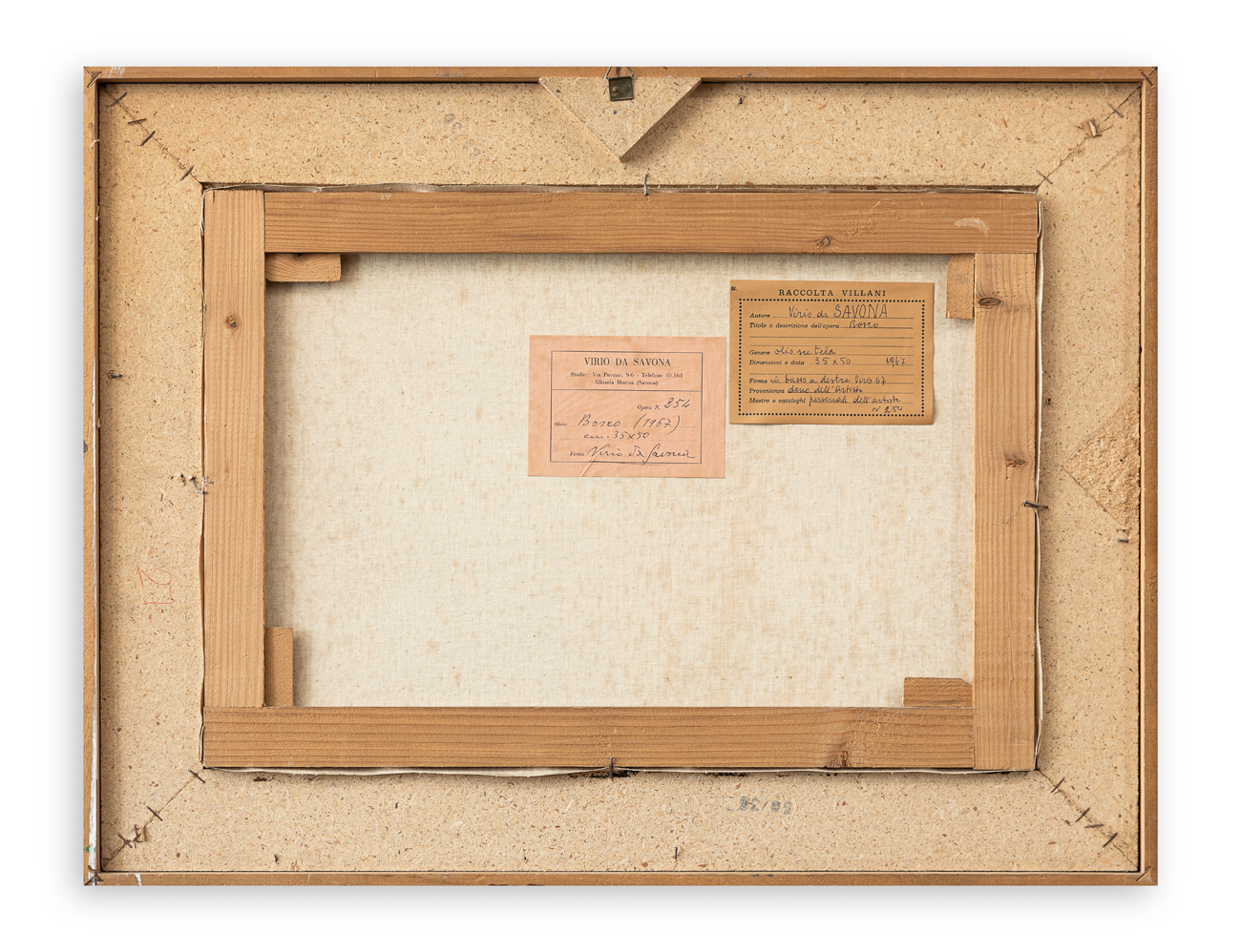 Etichetta dell'Artista recante firma, titolo, misure, datazione e numero di repertorio al retro