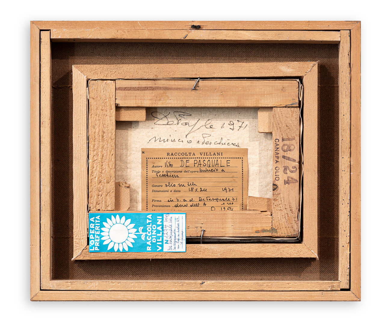 Etichette della Raccolta Villani, recanti caratteristiche tecniche dell'opera, al retro