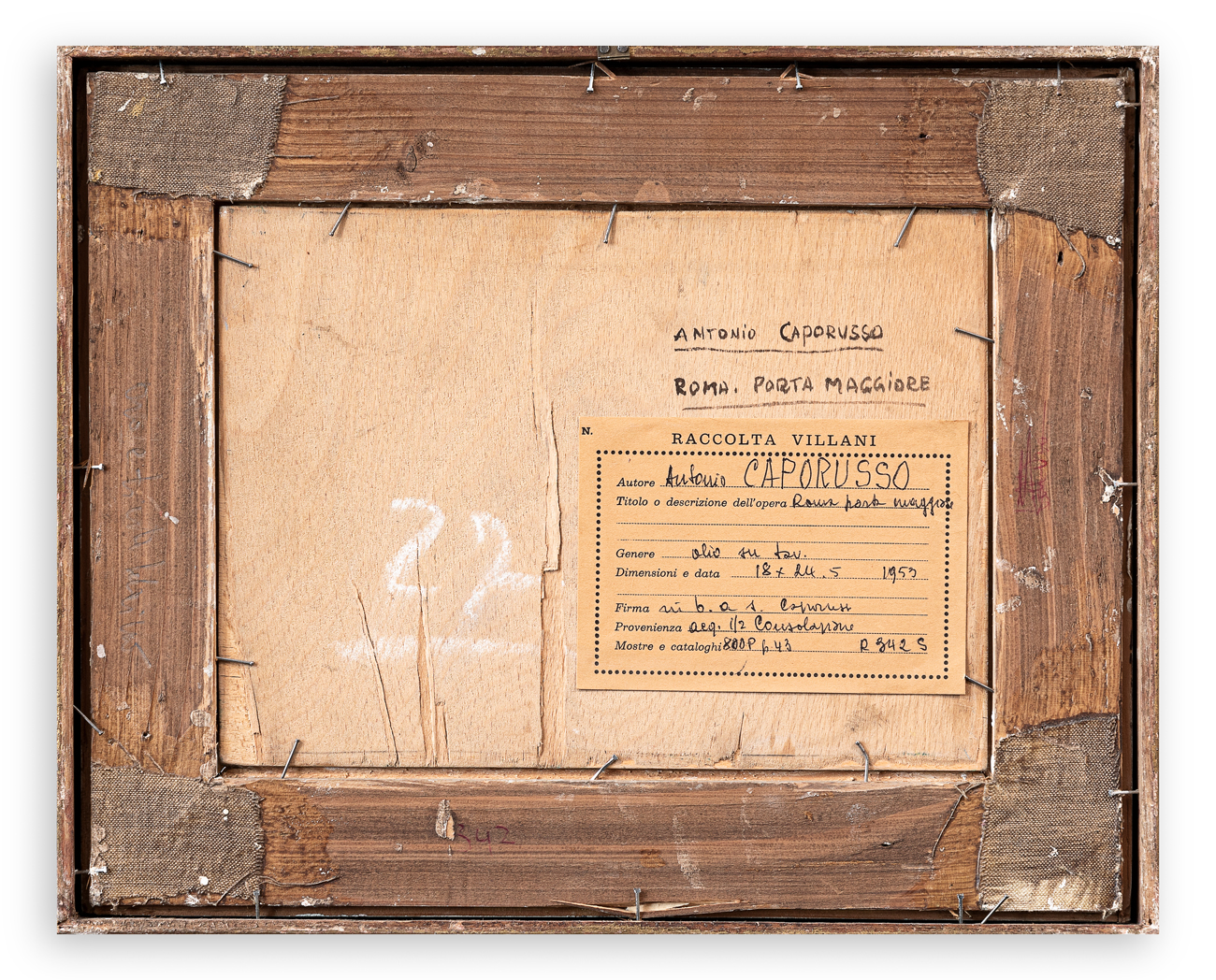 Etichetta della Raccolta Villani, recante caratteristiche tecniche dell'opera, al retro