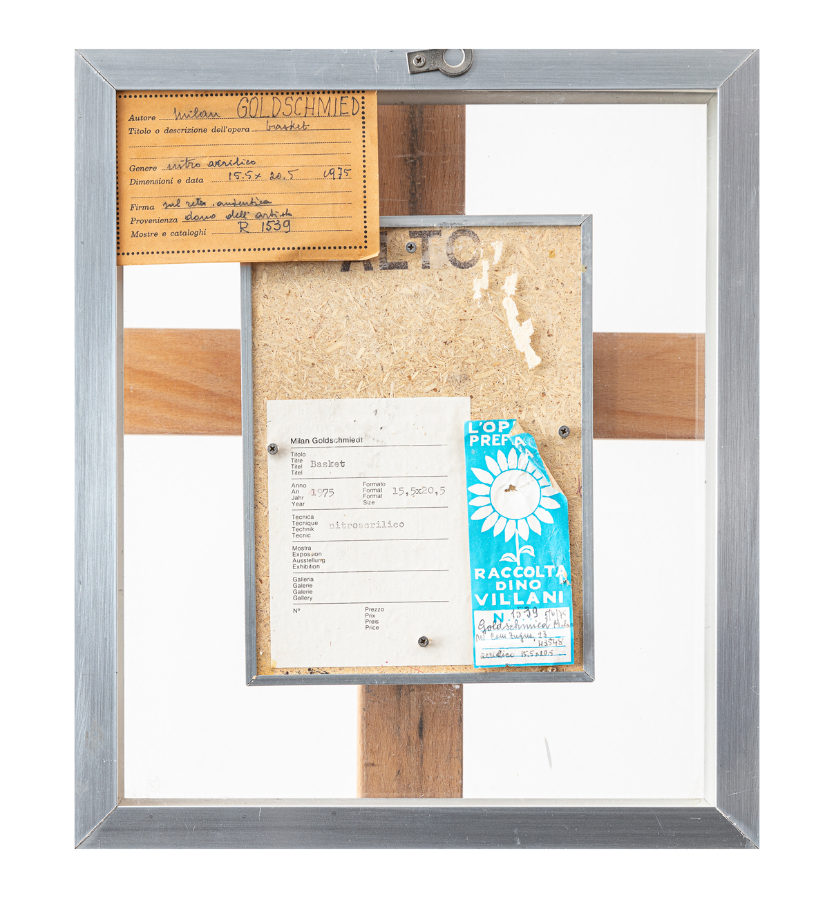 Etichetta dell'Artista al retro con titolo, tecnica, misure e datazione