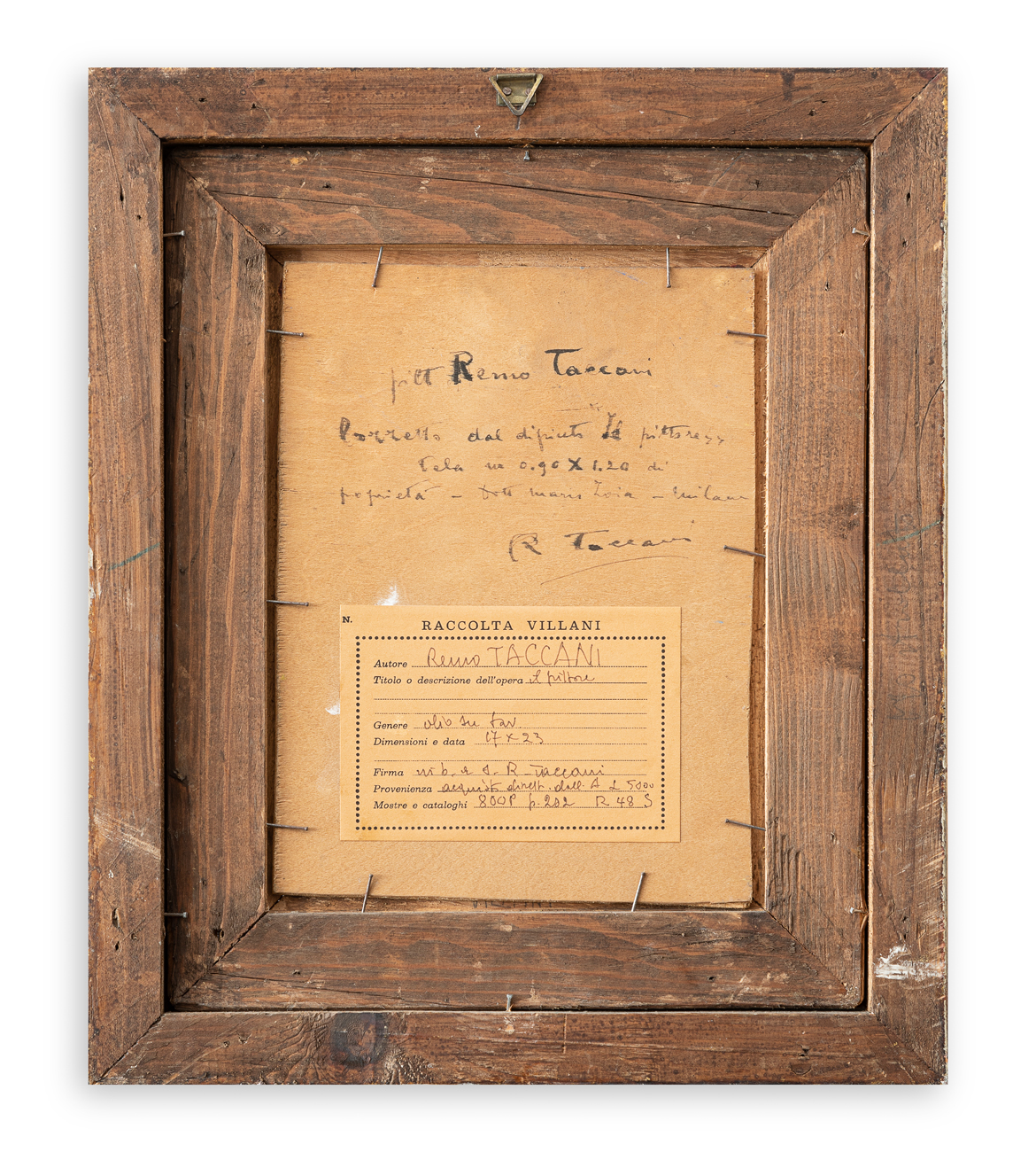 Etichetta della Raccolta Villani, recante caratteristiche tecniche dell'opera, al retro