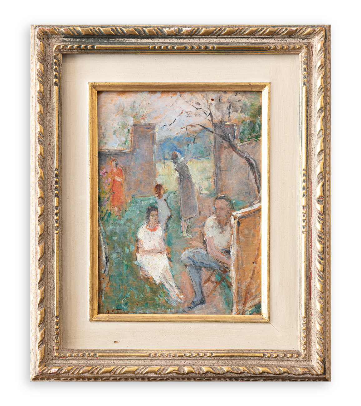 Firma e iscrizione autografa 'Bozzetto dal dipinto Il Pittore - tela cm 0.90 x 1.20) al retro