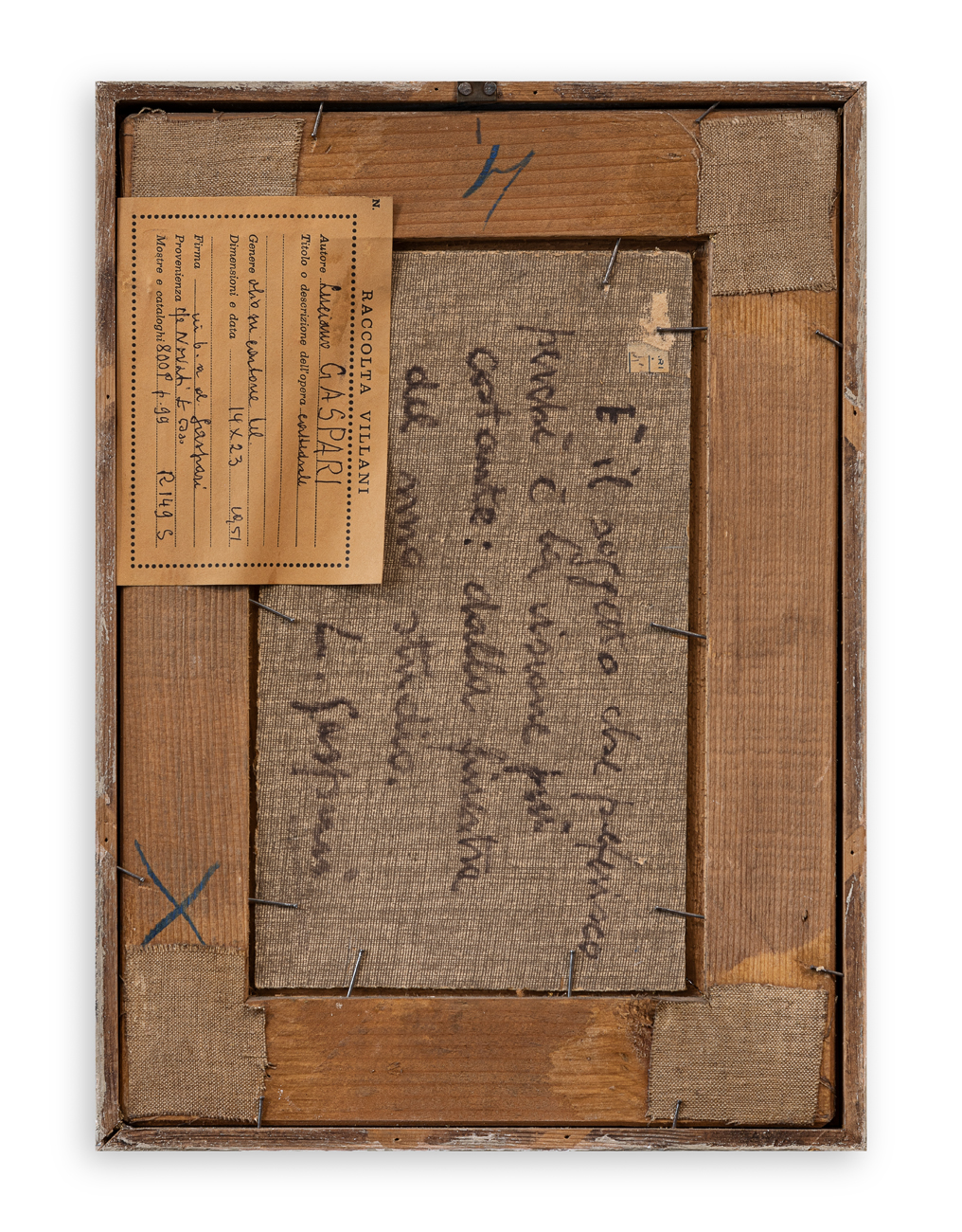 Etichetta della Raccolta Villani, recante caratteristiche tecniche dell'opera, al retro