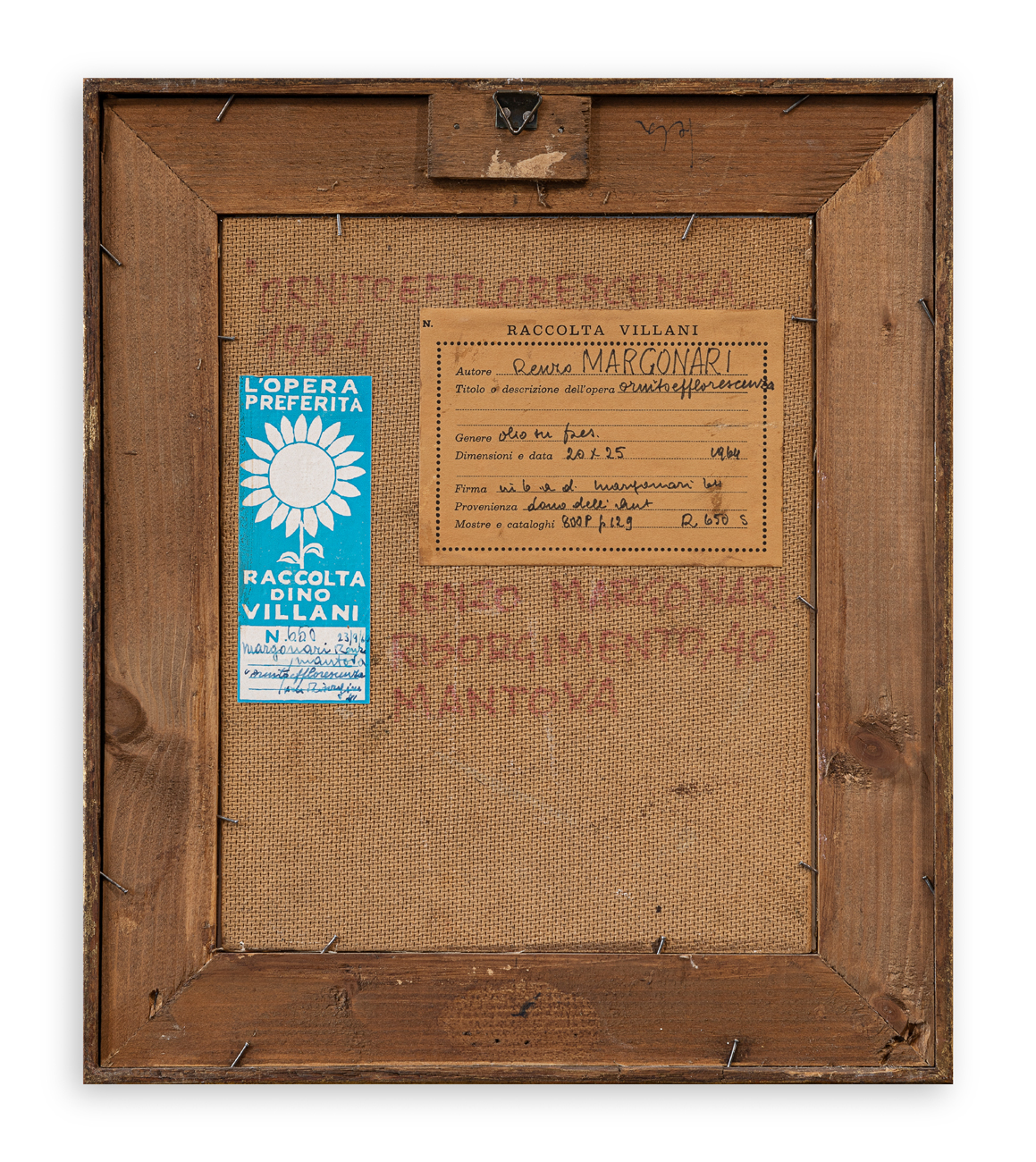 Etichette della Raccolta Villani, recanti caratteristiche tecniche dell'opera, al retro