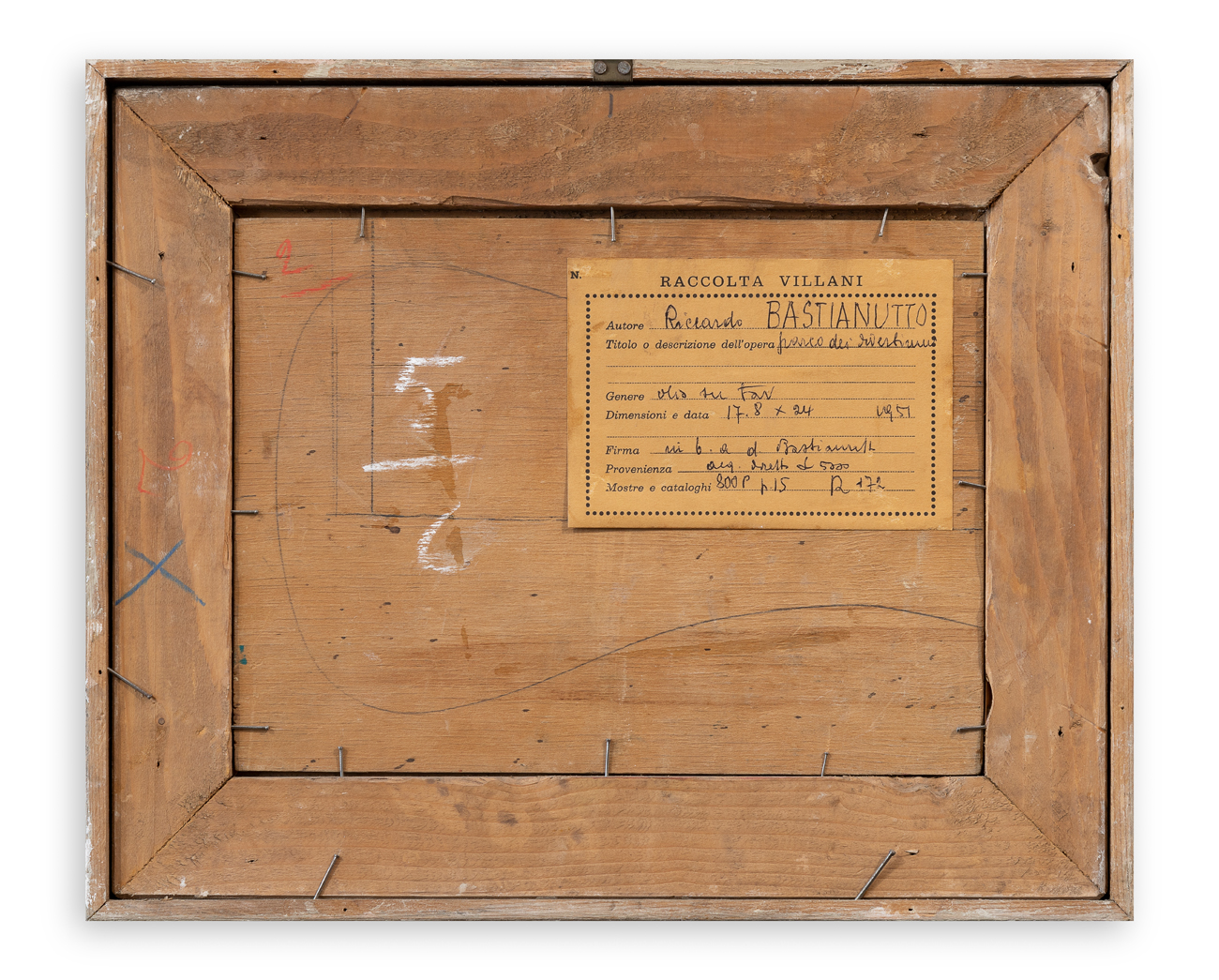 Etichetta della Raccolta Villani, recante caratteristiche tecniche dell'opera, al retro