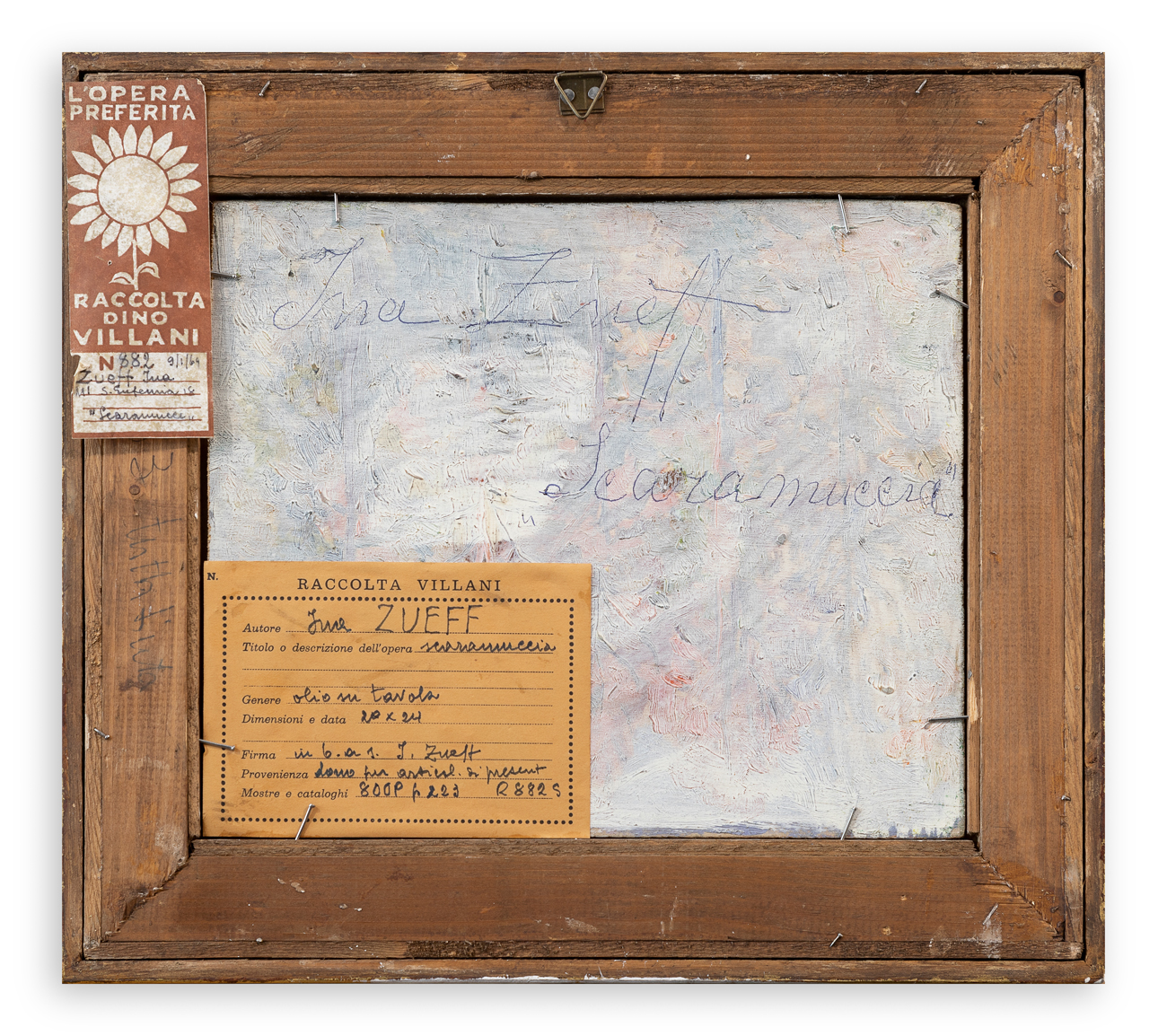 Etichette della Raccolta Villani, recanti caratteristiche tecniche dell'opera, al retro