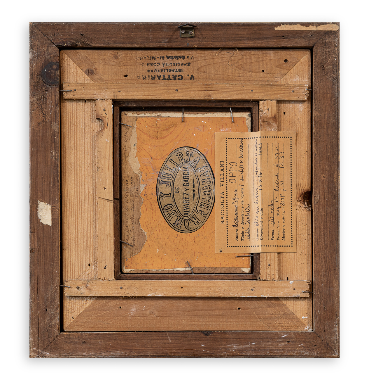 Etichetta della Raccolta Villani, recante caratteristiche tecniche dell'opera, al retro