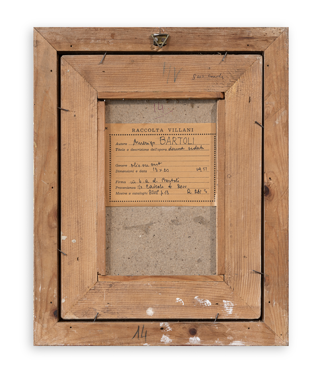 Etichetta della Raccolta Villani, recante caratteristiche tecniche dell'opera, al retro