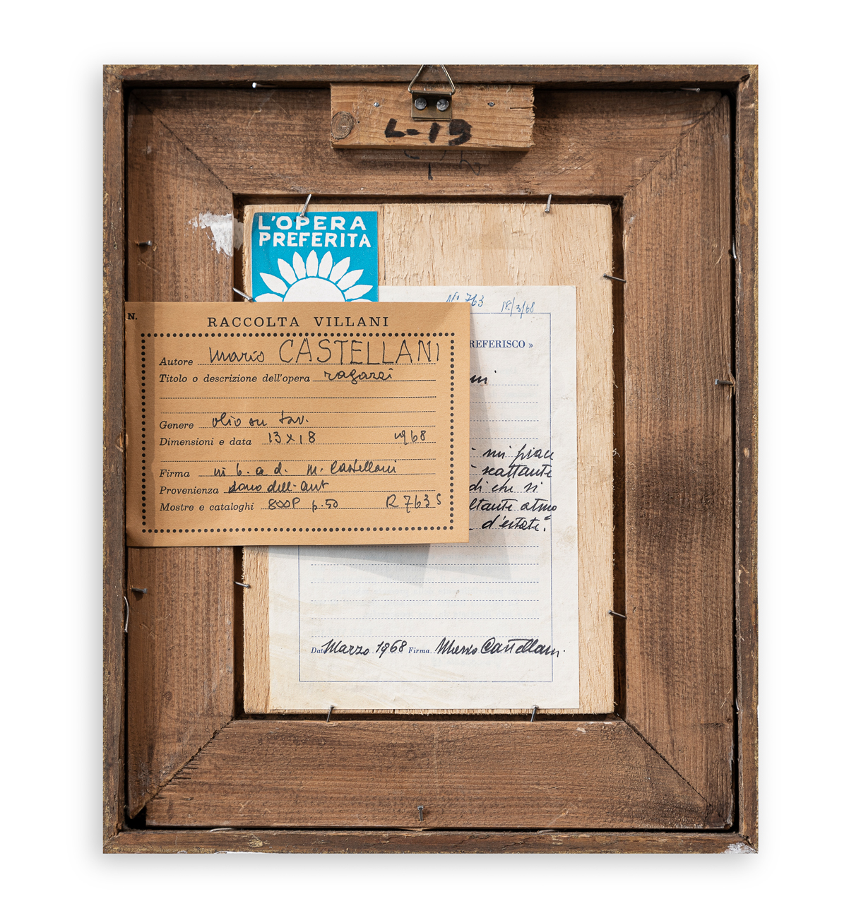 Etichette della Raccolta Villani, recanti caratteristiche tecniche dell'opera, al retro