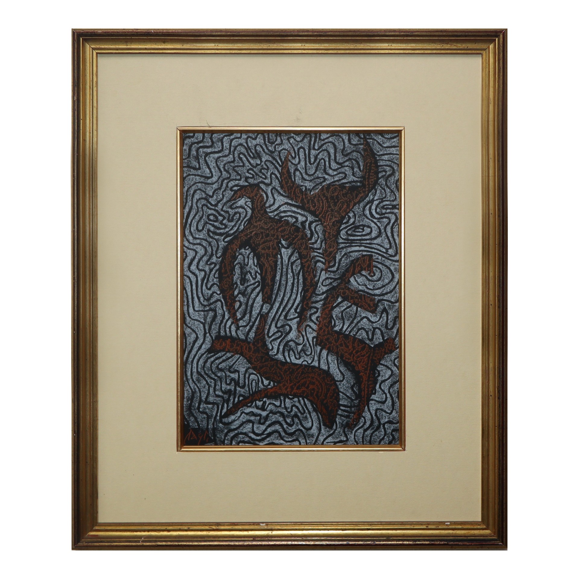 Corrado Cagli (Ancona 1910 - Roma 1976) - Volo d'uccelli, 1964 h cm 18x25 in cornice h cm 42X35 pastello a cera su carta Firmato in basso a sinistra. Etichetta al retro. Certificato di Garanzia e Autenticità Meeting Art