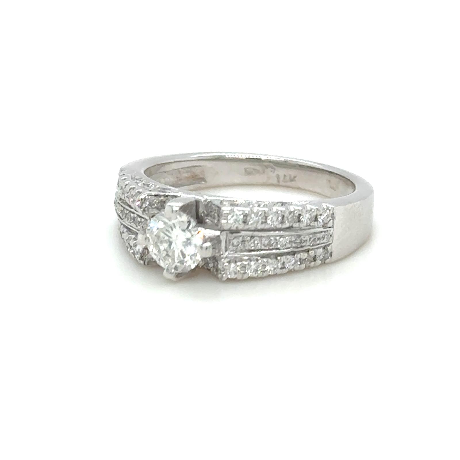 ANELLO IN ORO BIANCO 18k - 4.81 GR CON DIAMANTI : PEITRA CENTRALE BRILLANTE COLORE F VS 1-0.46 CT + BRILLANTI LATERALI D-F VVS-VS 0.54 CT TAGLIA: 6.5 CERTIFICATO LD GR - DH-R768 - COMMISSIONE D’ASTA 25%
