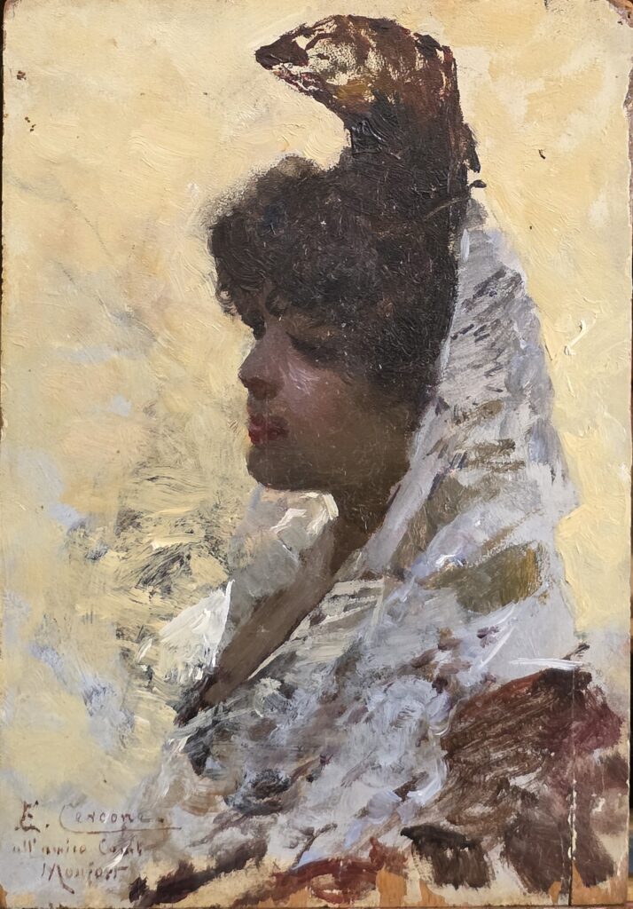Lot 28 | Ettore Cercone(1850-1896).Ritratto di donna. Misure:cm.17 x 24