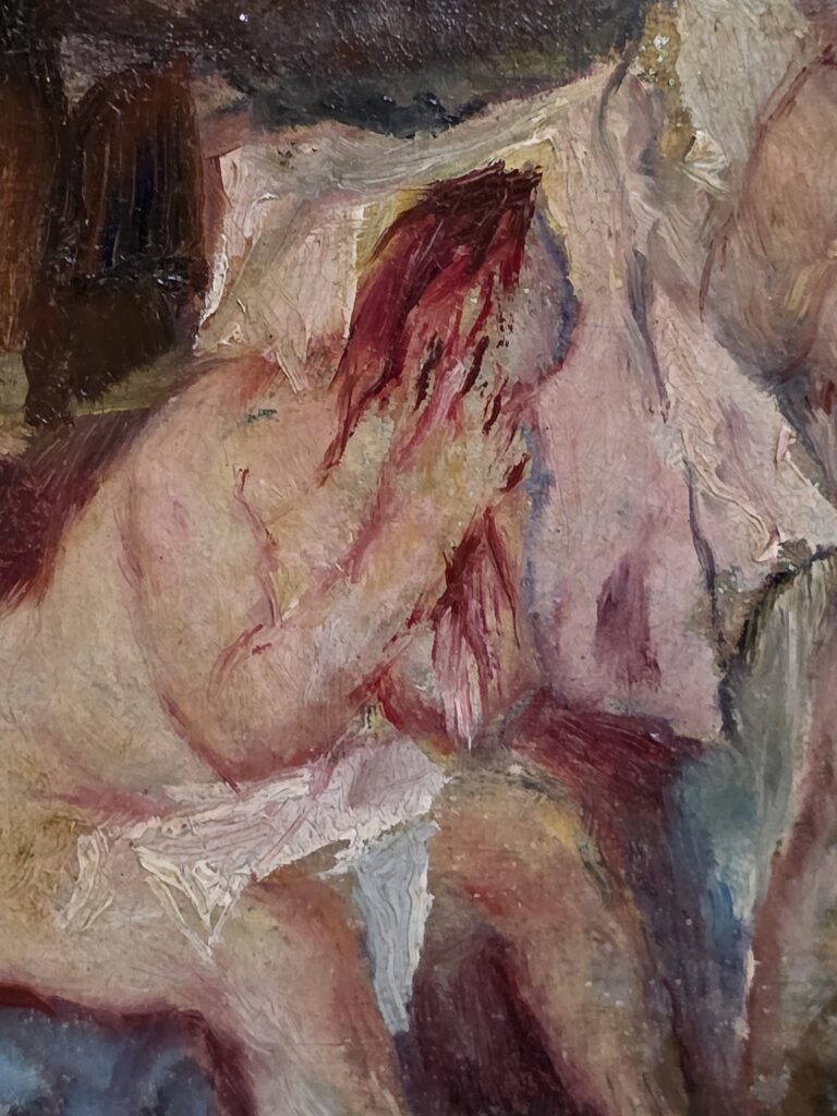 Giovanni Brancaccio(1903-1975).Attr.a.Bagnanti.Cm.20 x 30 Misure: cm.20 x 30 Tela applicata su cartoncino attribuito a Giovanni Brancaccio Non firmato