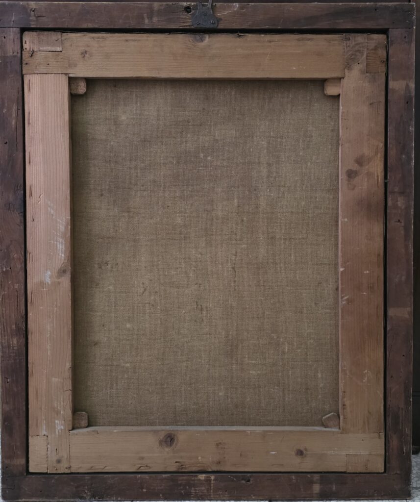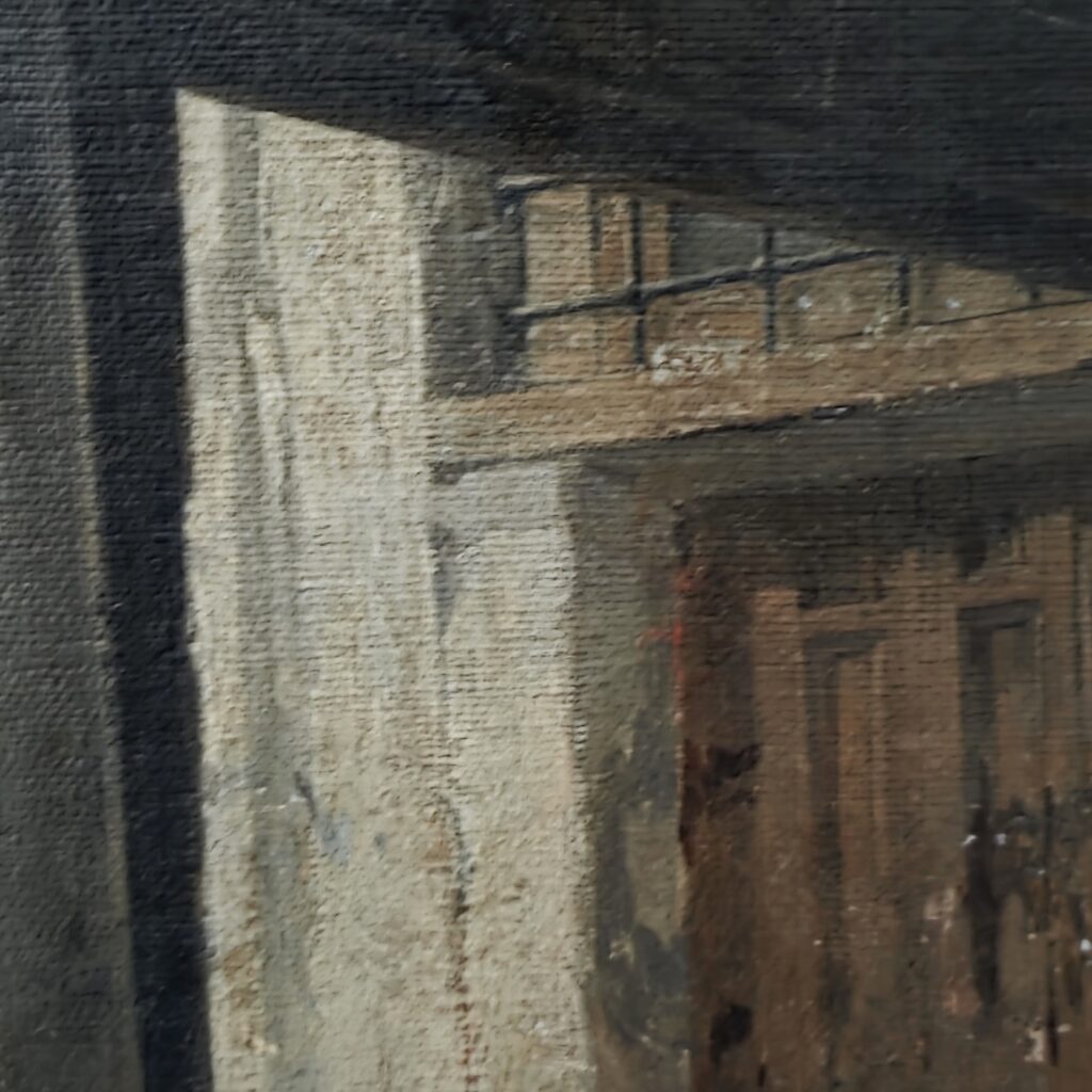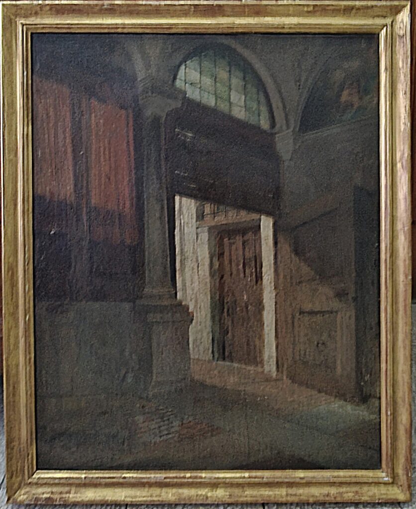 Scuola napoletana XIX secolo. Interno di chiesa. Cm.52 x 65 Misure: cm.52 x 65 senza cornice Misure: cm.60 x 73 con cornice Scuola napoletana,XIX olio su tela interno di chiesa.