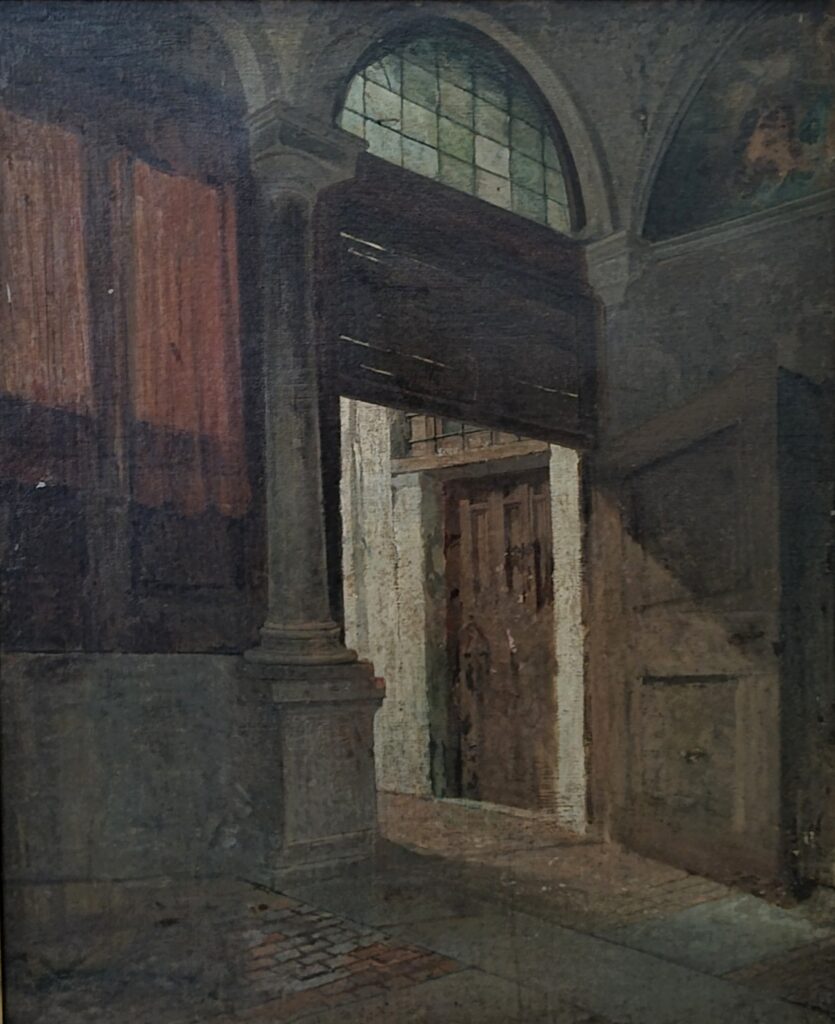 Scuola napoletana XIX secolo. Interno di chiesa. Cm.52 x 65